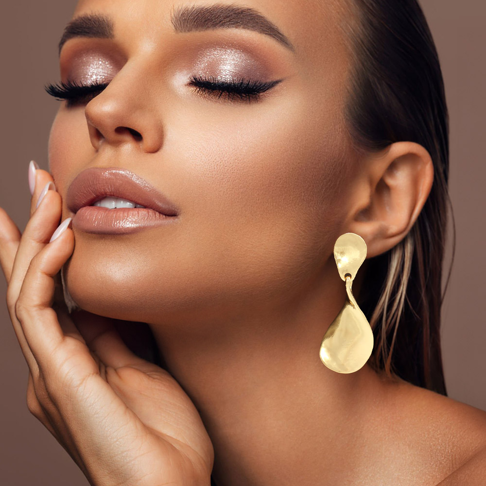 • Make a bold impression with these organic drop statement earrings featuring a fluid sculptural design that creates soft, modern movement. Their eye-catching silhouette adds an artistic touch to any outfit, offering a standout accessory perfect for both everyday wear and elevated looks.