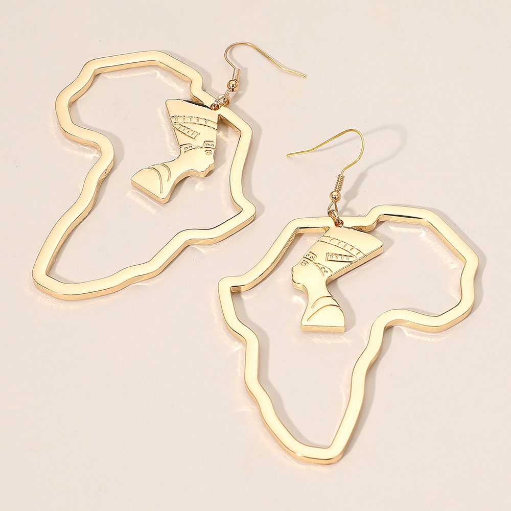 Oversized Africa Map Queen Silhouette Drop Dangle Earrings