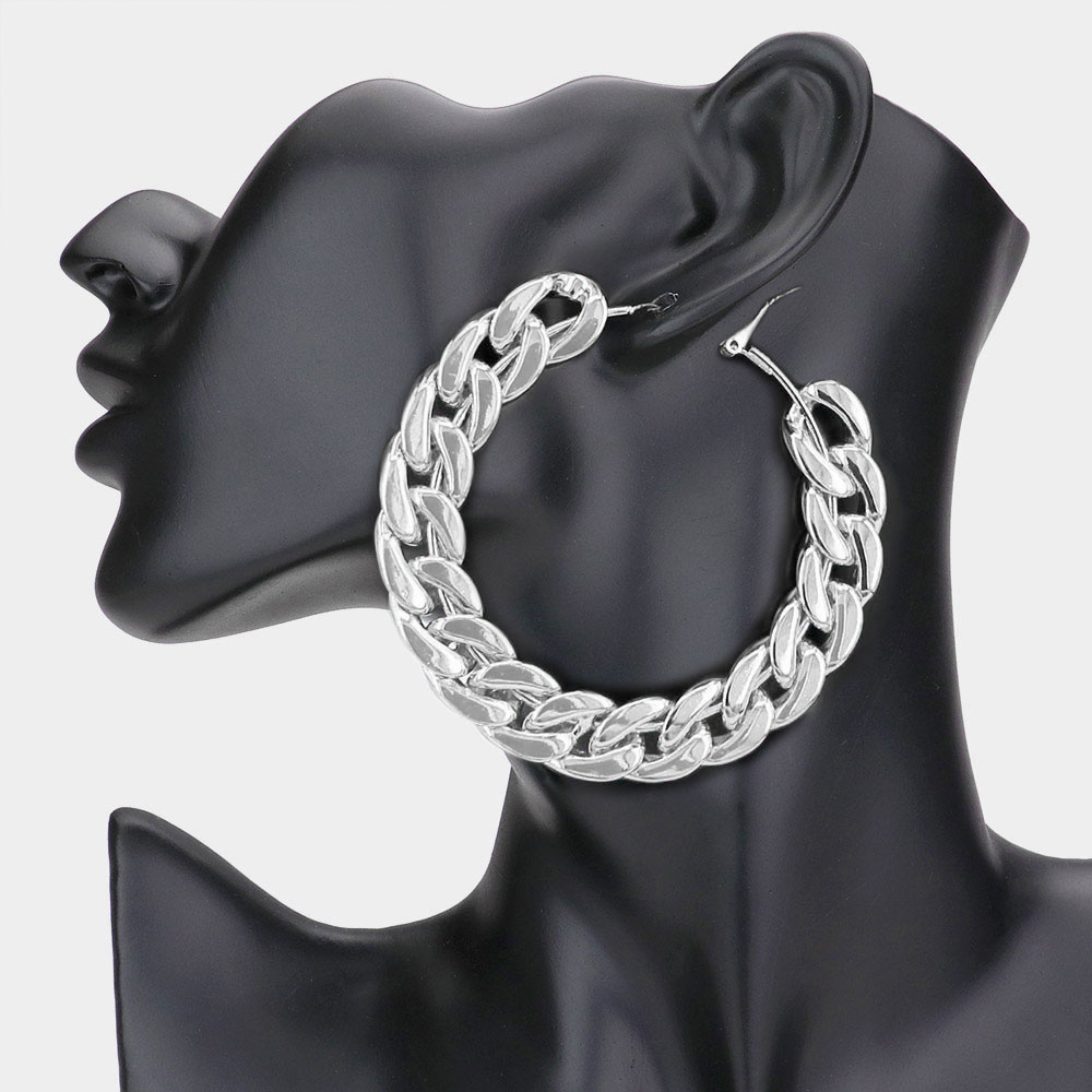 Oversized Metal Chain Hoop Earrings