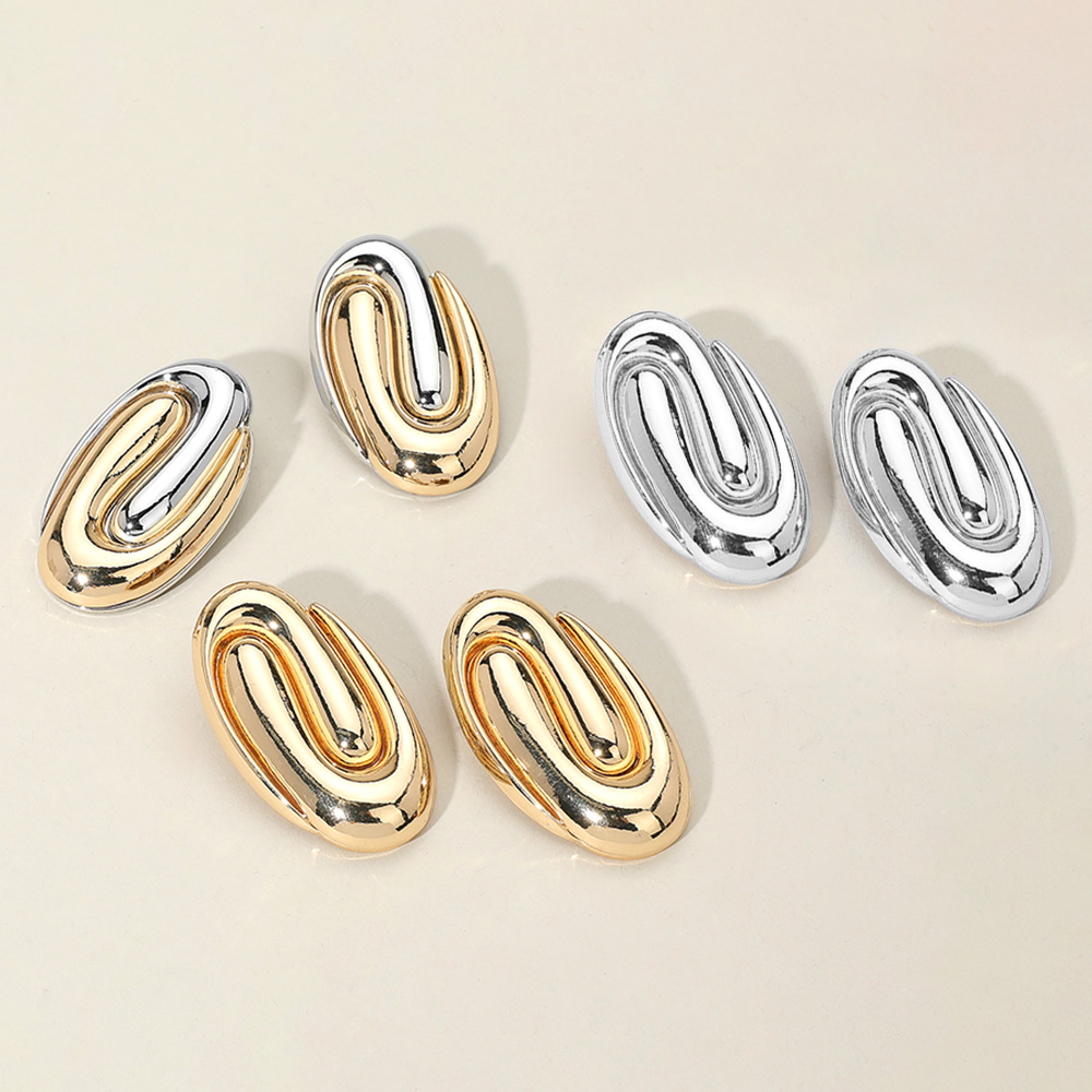 Oversized Metal Oval Swirl Earrings