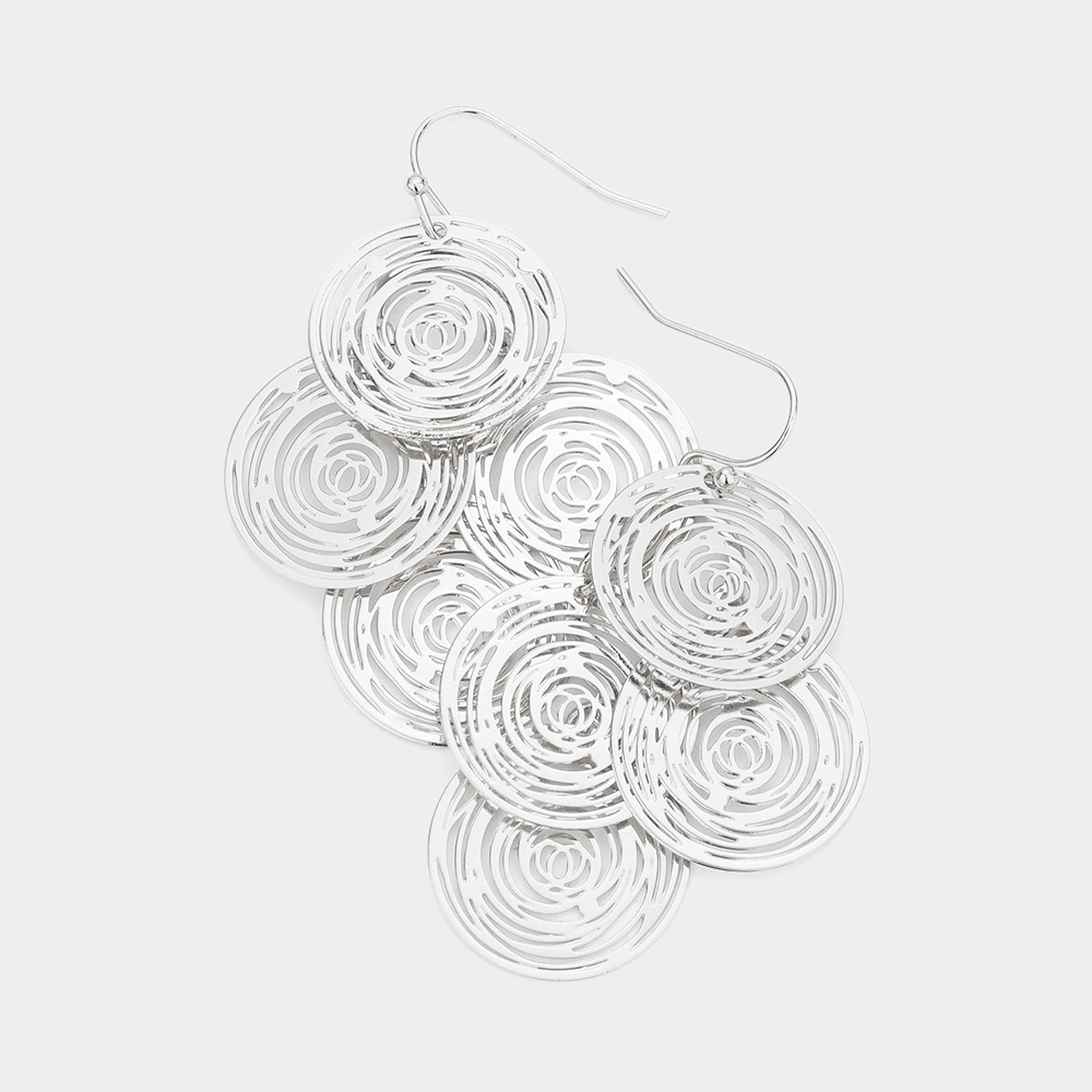 Rose Cut Out Disc Cluster Earrings