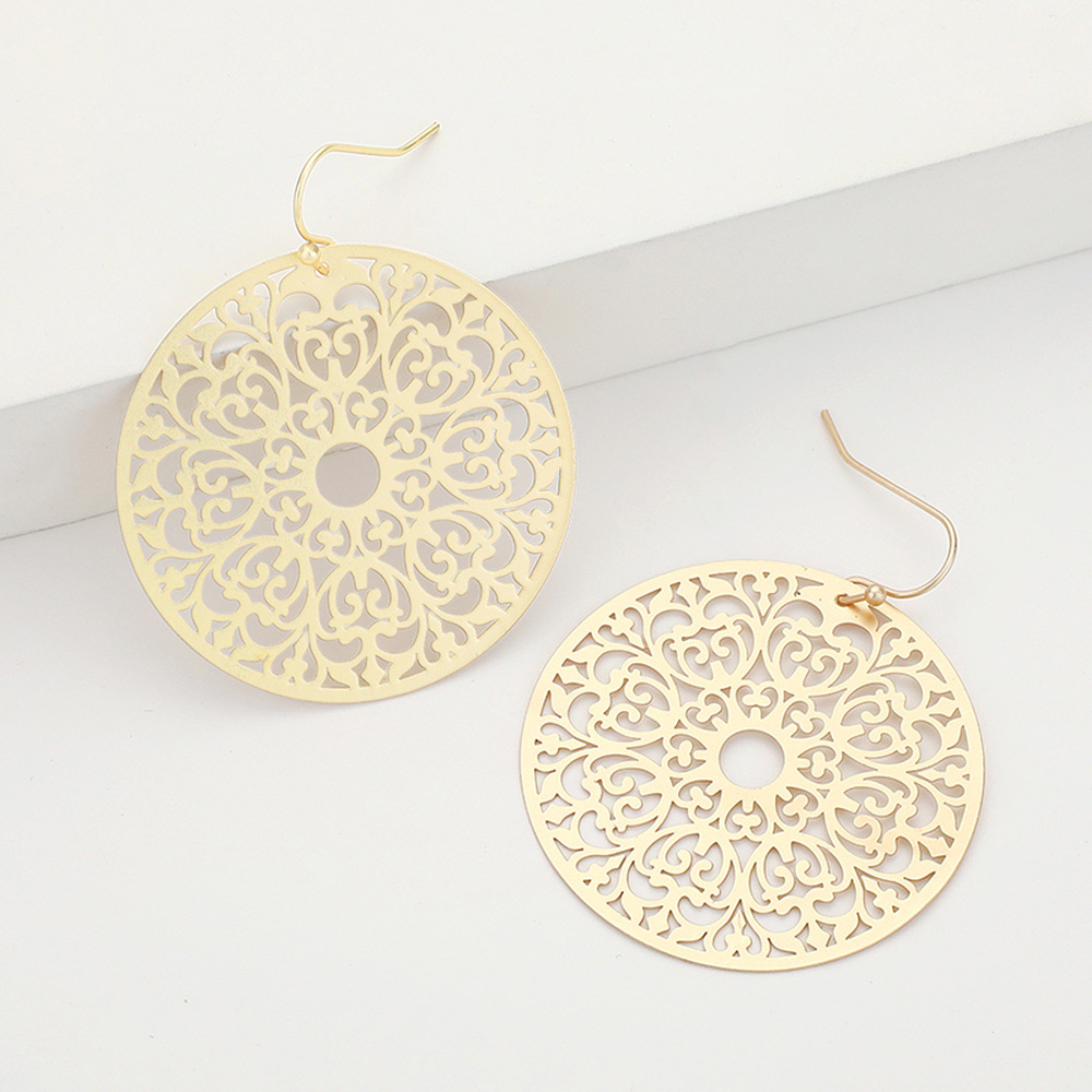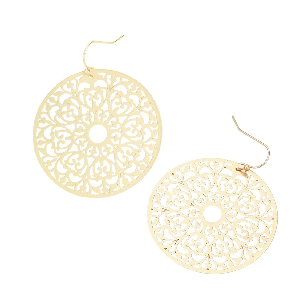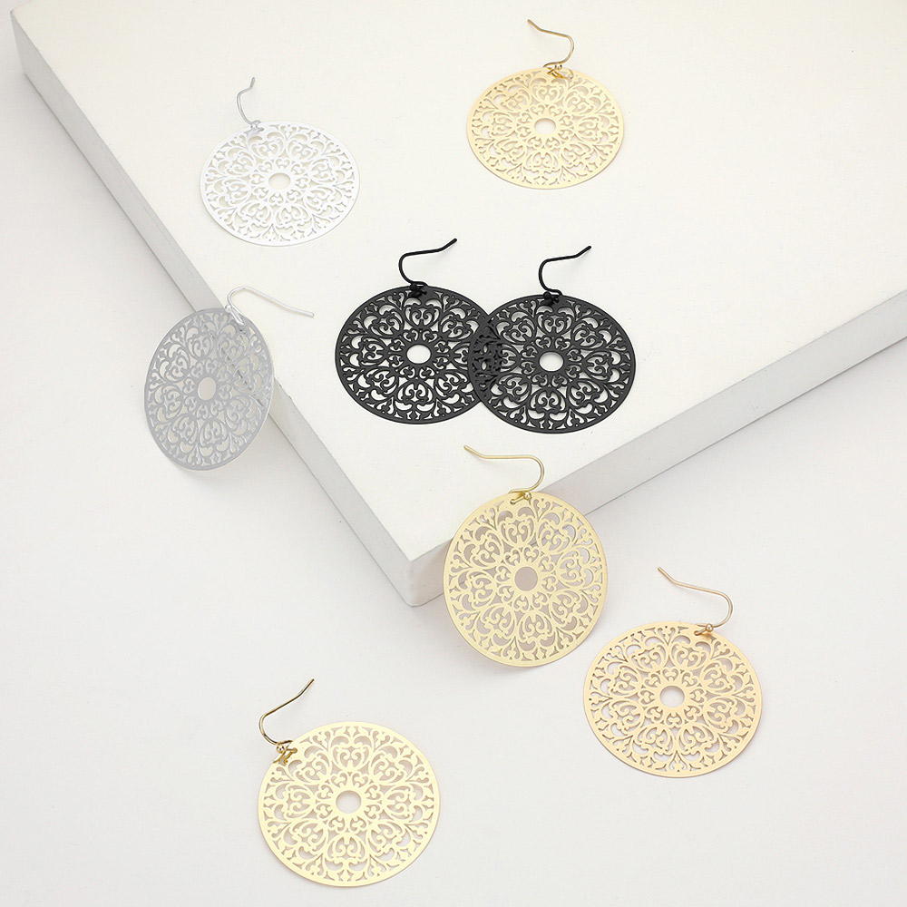 Stone Pointed Metal Filigree Flower Link Dangle Earrings