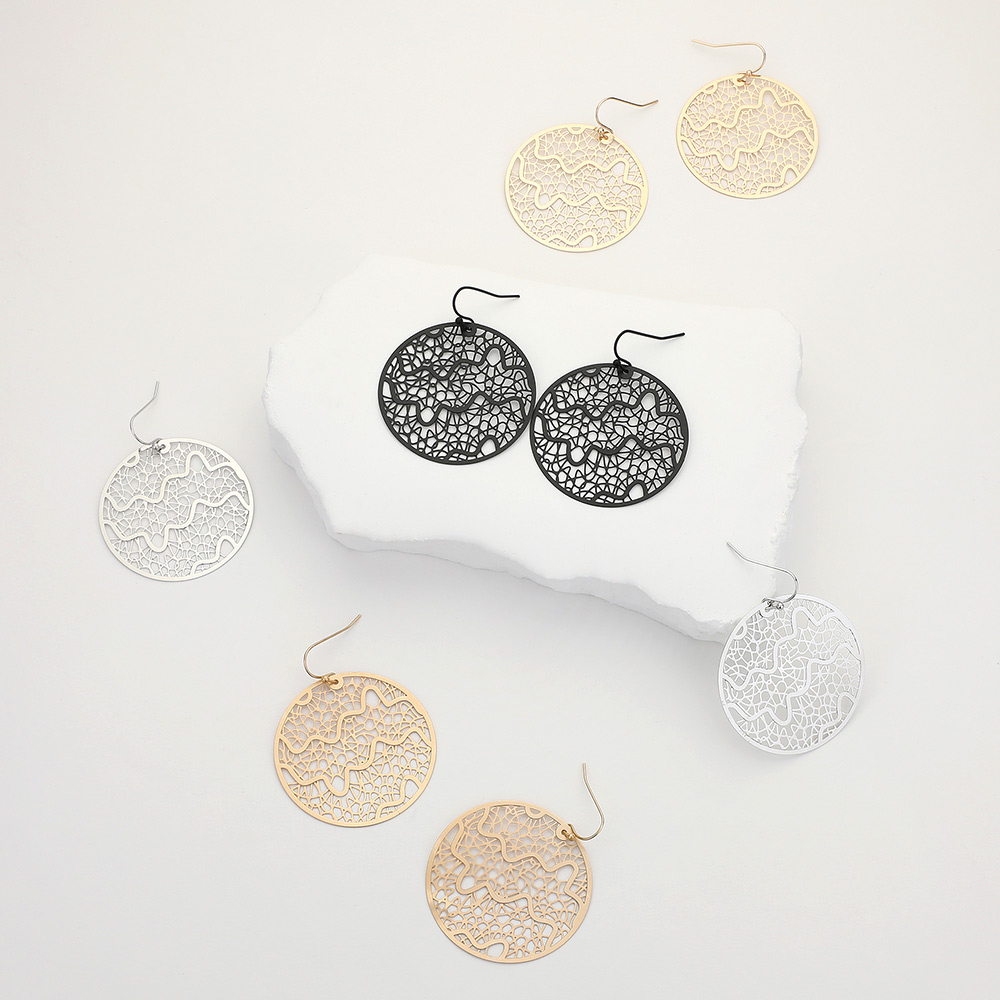 Brass Metal Filigree Tropical Leaf Dangle Earrings