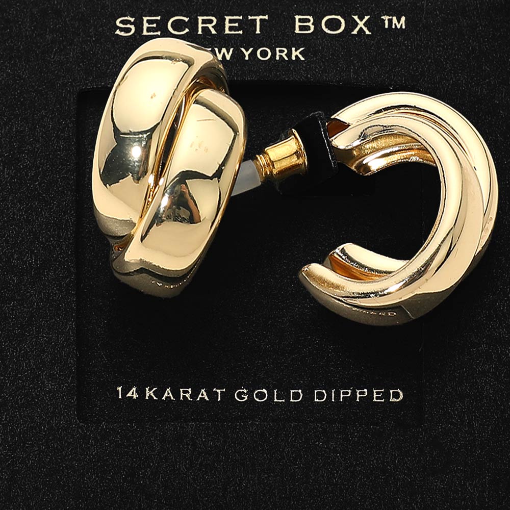 Details • Size : 1" X 0.8" X 0.5" • Post Back • These chunky C-shape hoop earrings feature a bold curved silhouette with a smooth, high-shine finish that elevates any look. Designed for statement styling without excess weight, they transition effortlessly from everyday wear to evening outfits. A versatile, on-trend accessory that appeals to customers seeking modern elegance, confident design, and timeless hoop appeal. • Gold Dipped