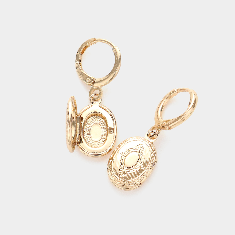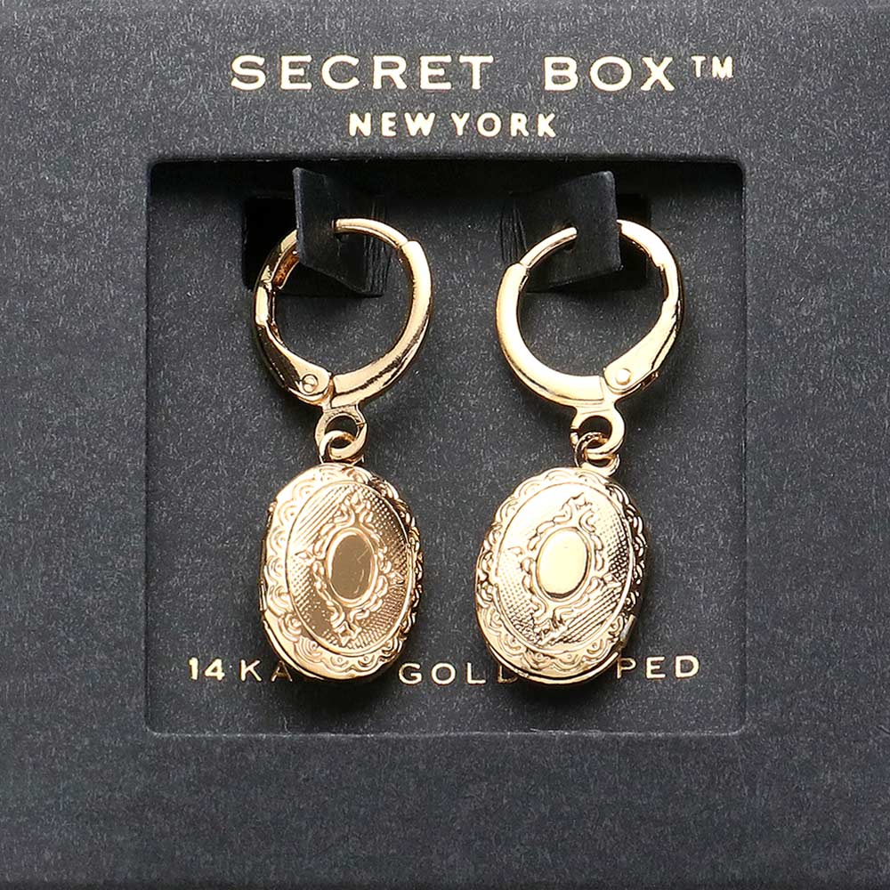 SECRET BOX_14K Gold Dipped Locket Dangle Huggie Earrings