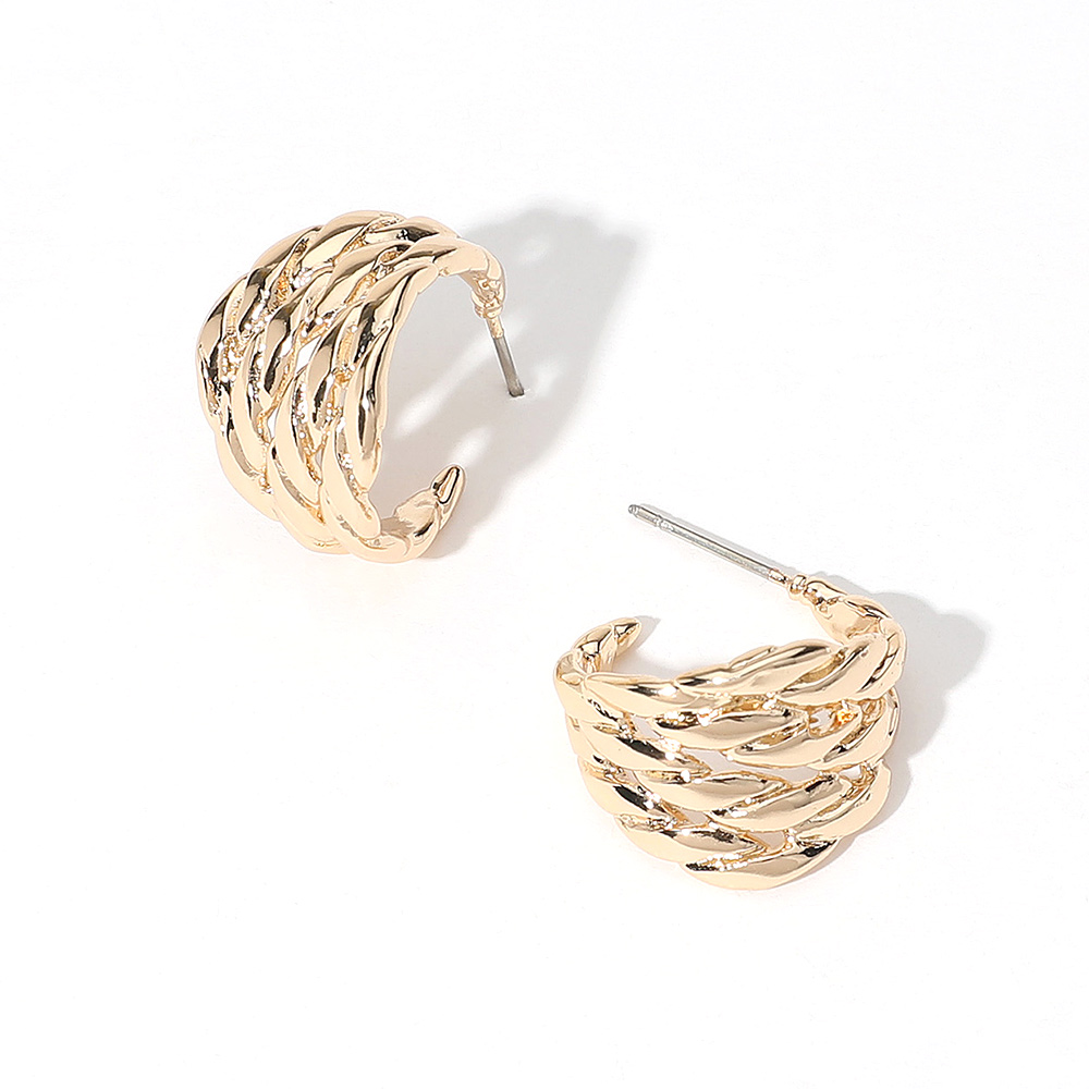 Details • Size : 0.75" X 0.75" X 0.6" • Post Back • Bold twisted hoop earrings featuring a sculpted, dimensional design that adds modern texture to any look. Lightweight, eye-catching, and perfect for elevating everyday or evening outfits with a chic statement style. • Gold Dipped