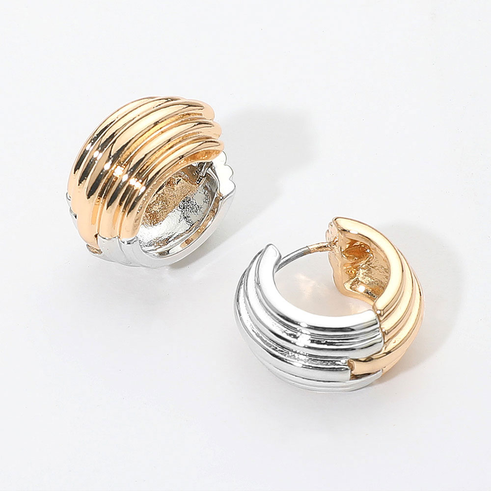 SECRET BOX_14K Gold Dipped Textured Two Tone Chunky Mini Huggie Hoop Earrings