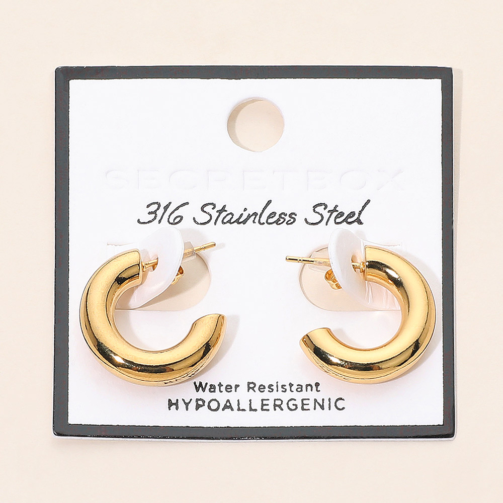 Details • Size : 0.8" X 0.8" X 0.2" • Post Back • Water Resistant • Bold yet refined stainless steel hoops designed to deliver a clean statement look with everyday comfort. Their smooth, rounded silhouette adds instant polish to casual outfits or evening styling, layering easily with other jewelry for a versatile, timeless accessory choice. • Hypoallergenic • Stainless Steel