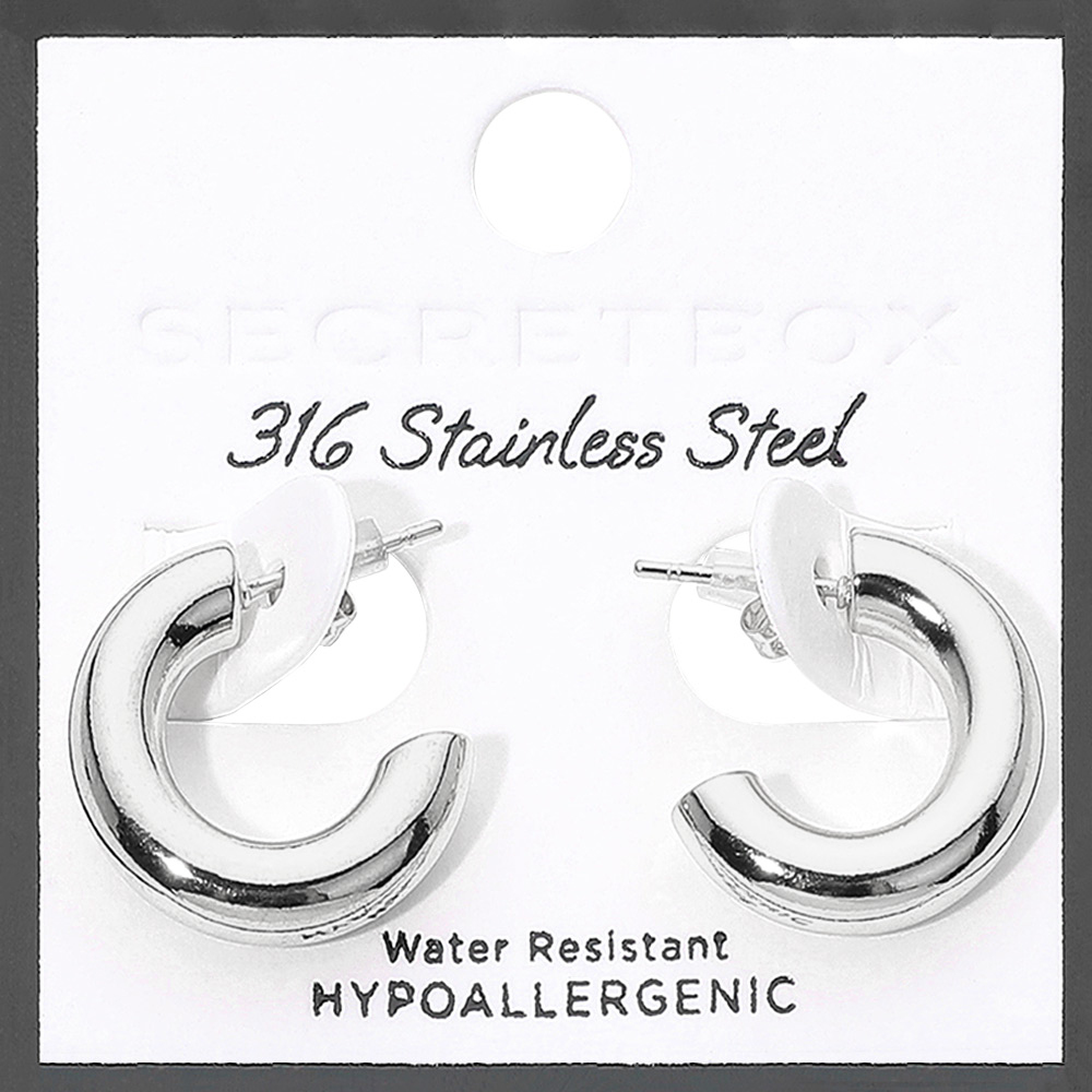 Details • Size : 0.8" X 0.8" X 0.2" • Post Back • Water Resistant • Bold yet refined stainless steel hoops designed to deliver a clean statement look with everyday comfort. Their smooth, rounded silhouette adds instant polish to casual outfits or evening styling, layering easily with other jewelry for a versatile, timeless accessory choice. • Hypoallergenic • Stainless Steel