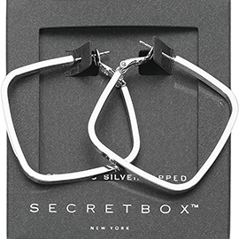 Details • Size : 1.9" X 1.9" • Omega Back • Elevate your style with these geometric hoop earrings featuring a unique open shape design. Lightweight yet bold, they offer a contemporary edge that transitions seamlessly from day to night. Perfect for adding a modern twist to casual or dressy looks. • Sterling Silver Dipped