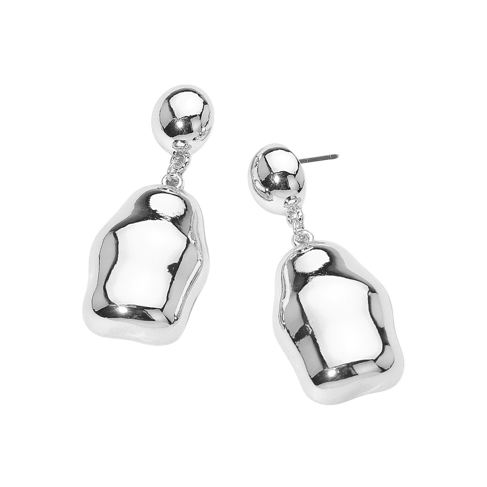 Silver Dipped Abstract Pebble Drop Dangle Earrings Silver Dipped Abstract Pebble Drop Dangle Earrings