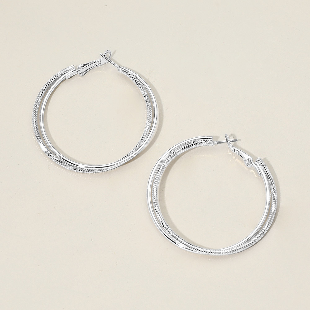 Details • Size : 2" X 2" • Omega Back • Classic medium textured hoop earrings featuring a detailed beaded-edge design and smooth rounded finish. Lightweight and comfortable with secure latch-back closures, perfect for elevating everyday outfits or adding a polished touch to special occasions. • Sterling Silver Dipped • Lead and Nickel Compliant