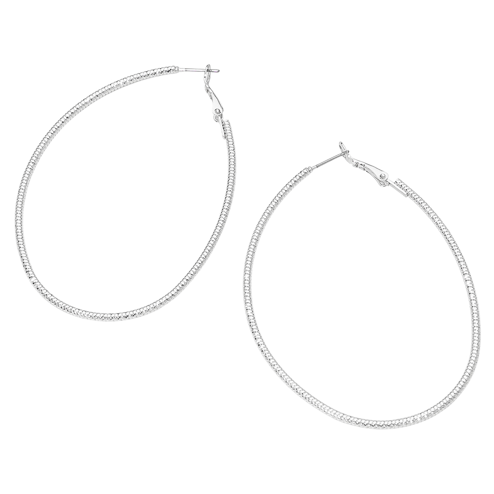 Details • Size : 2" X 3" • Omega Back • Stylish large hoop earrings featuring a refined textured finish and a slim, lightweight silhouette for comfortable all-day wear. A versatile accessory that adds modern elegance to casual outfits or enhances evening looks with a clean, polished style. • Sterling Silver Dipped • Lead and Nickel Compliant