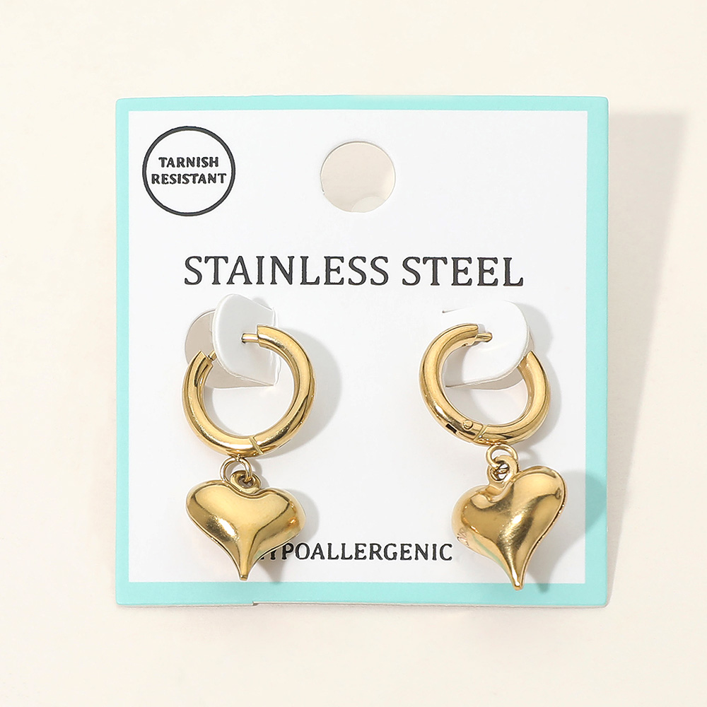 Details • Size : 0.6" X 1.25" • Huggie Back • Charming heart dangle hoop earrings designed to add a playful yet polished touch to everyday looks. The compact hoop silhouette with a smooth heart accent offers easy styling for casual outfits, date nights, or gift-ready moments with timeless appeal. • Hypoallergenic • Lead and Nickel Compliant • Stainless Steel