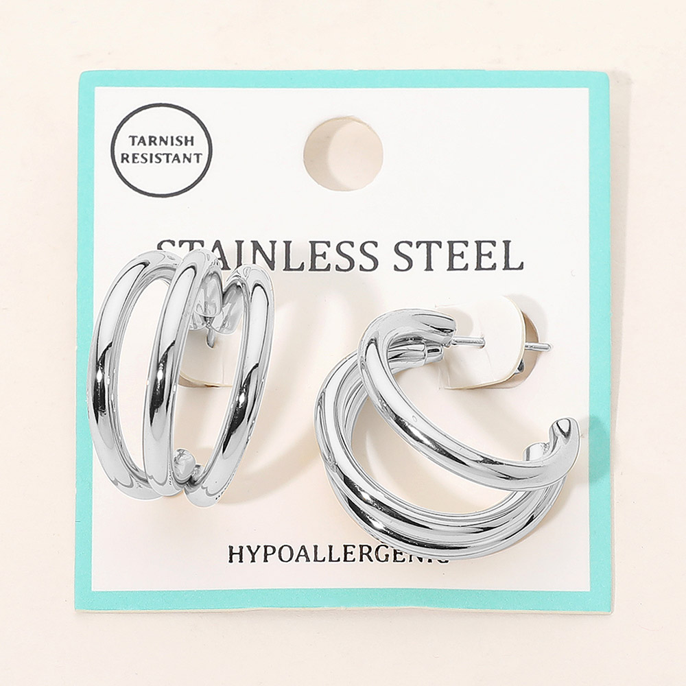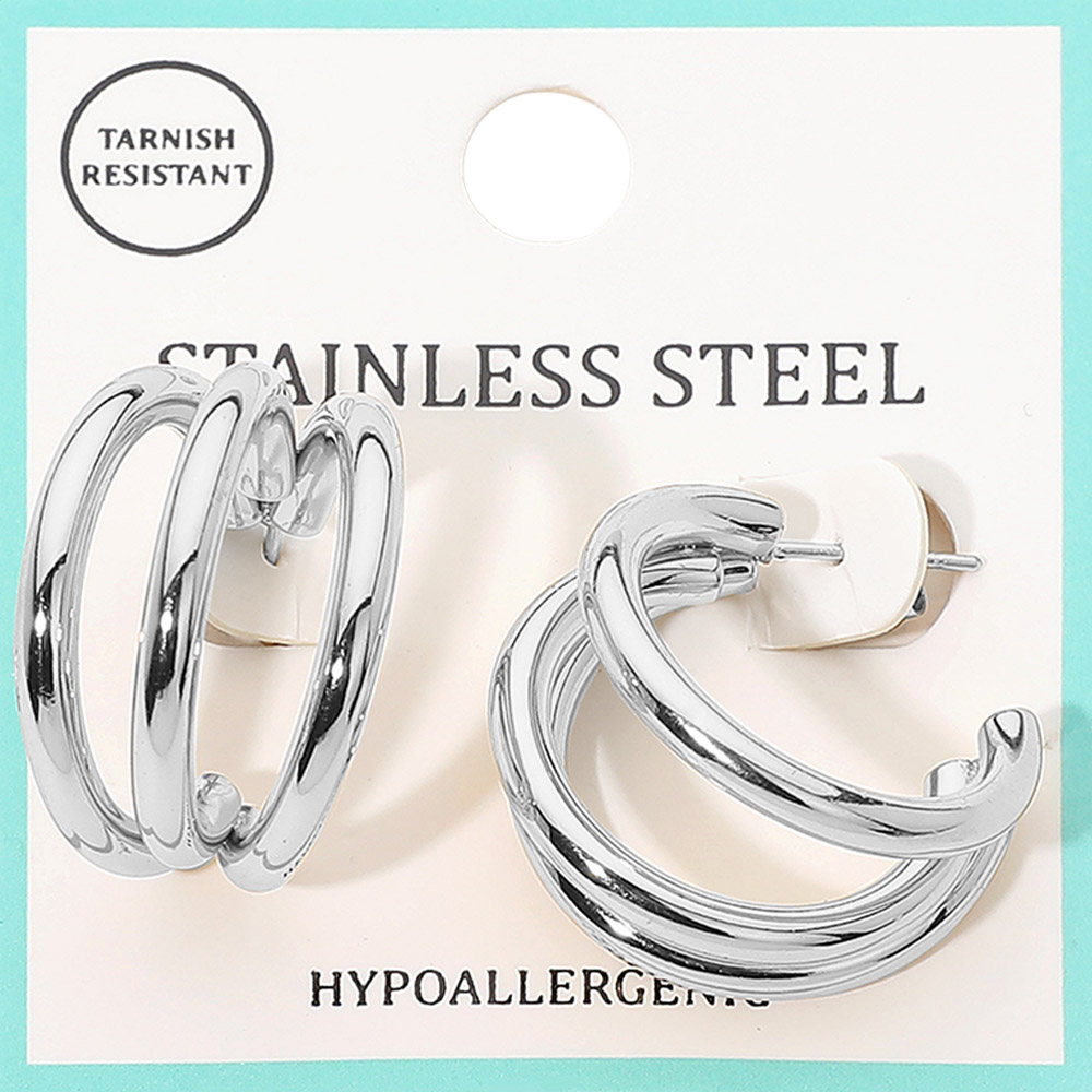 Stainless Steel Triple Hoop Earrings Stainless Steel Triple Hoop Earrings