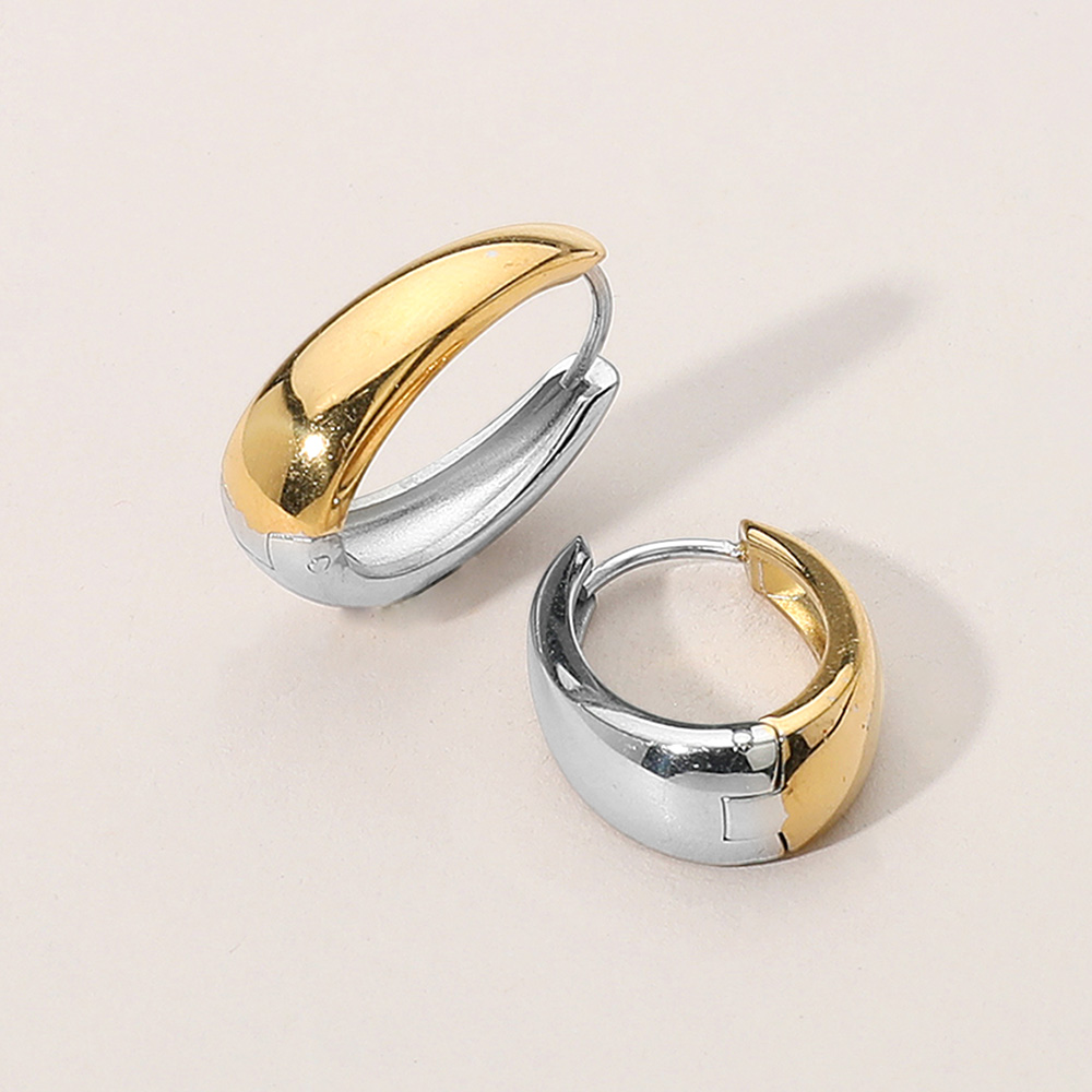 Stainless Steel Two Tone Huggie Hoop Earrings