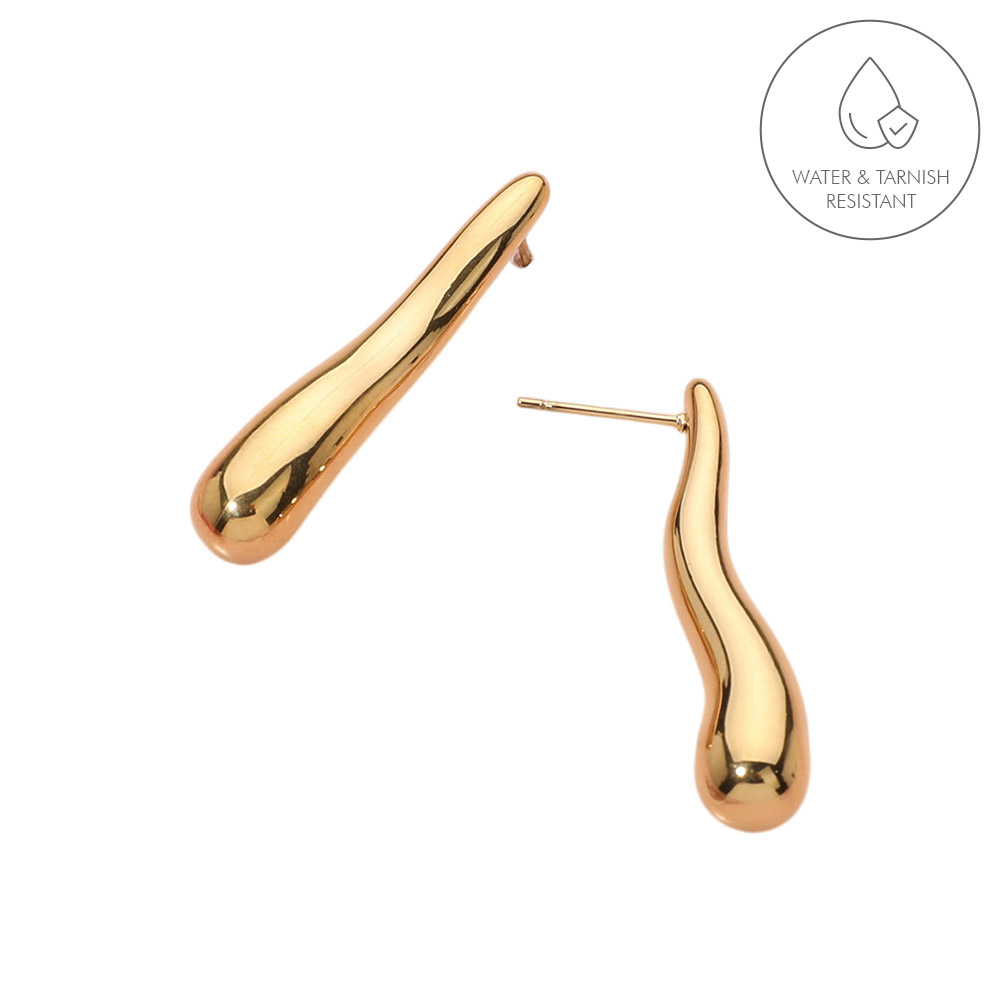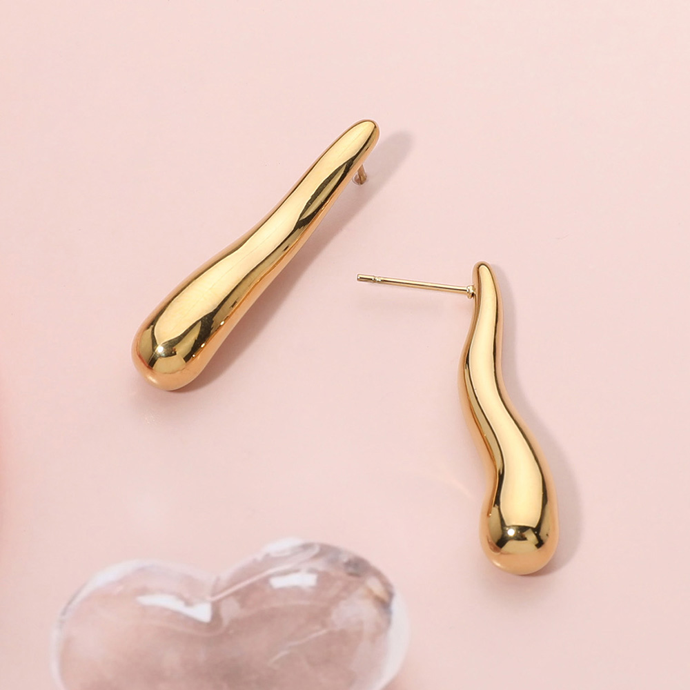 Stainless Steel Wavy Long Teardrop Earrings