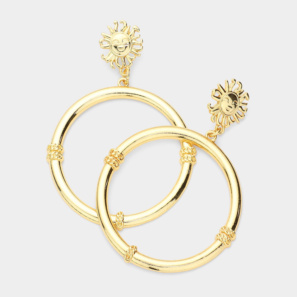 Sun Accented Open Metal Circle Link Dangle Earrings