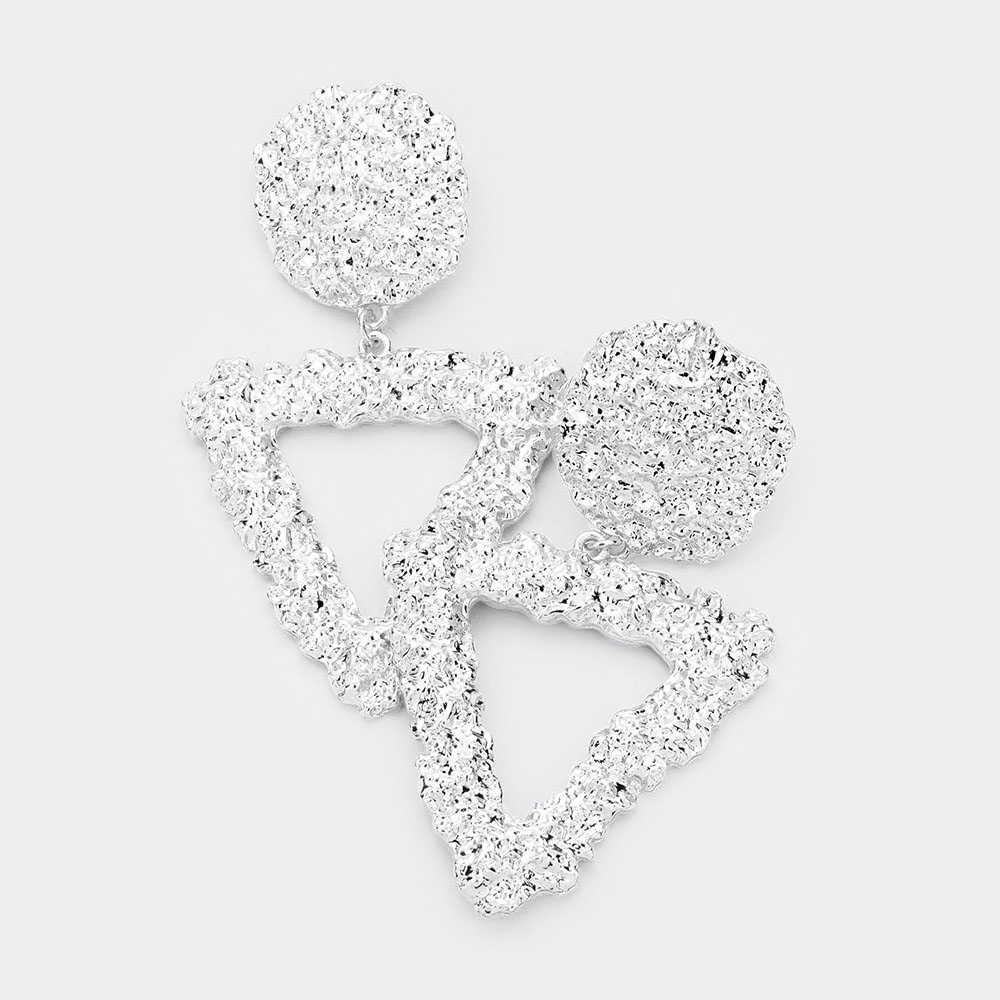 Textured Geometric Metal Open Triangle Earrings