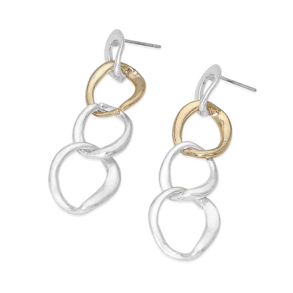 Details • Size : 0.6" X 2.1" • Post Back • Modern drop earrings designed with organically shaped linked elements for a sculptural, artistic look. Featuring fluid movement and a lightweight feel, these statement earrings add bold dimension and contemporary style, making them ideal for everyday wear, special occasions, and trend-focused accessory collections. • Lead and Nickel Compliant