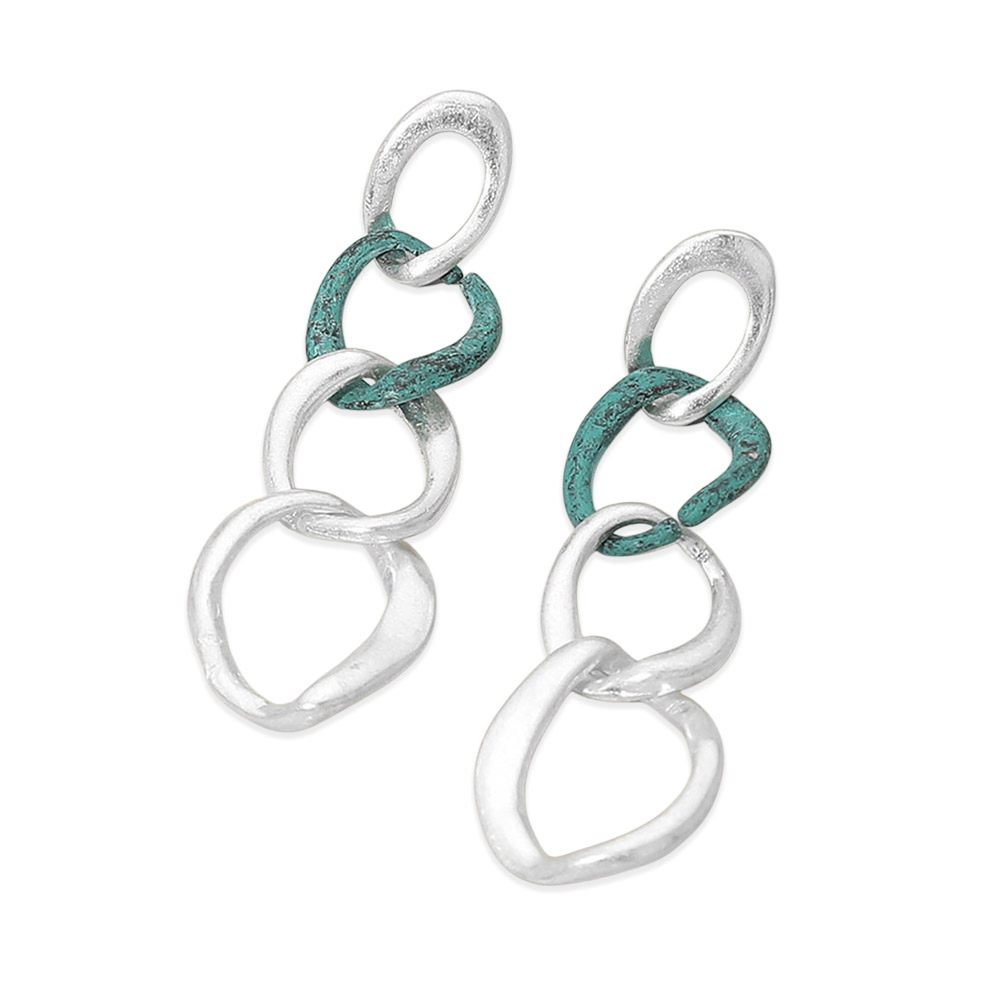 Details • Size : 0.6" X 2.1" • Post Back • Modern drop earrings designed with organically shaped linked elements for a sculptural, artistic look. Featuring fluid movement and a lightweight feel, these statement earrings add bold dimension and contemporary style, making them ideal for everyday wear, special occasions, and trend-focused accessory collections. • Lead and Nickel Compliant