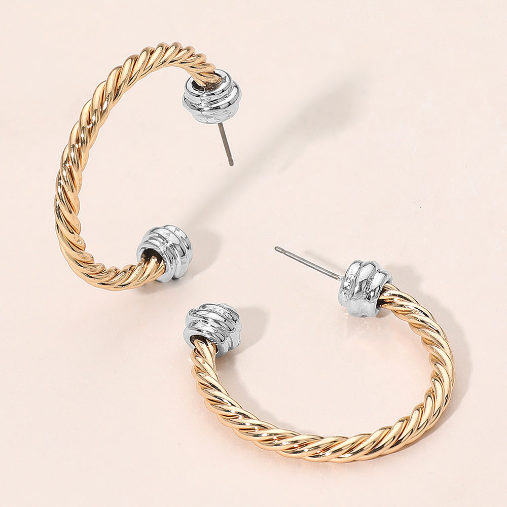Two Tone Metal Rope Hoop Earrings