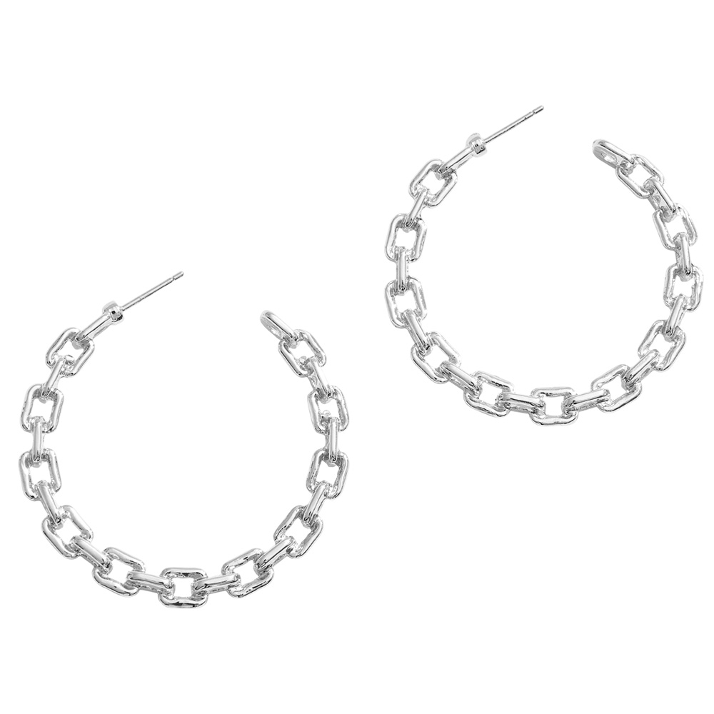 Details • Size : 1.75" X 1.75" • Post Back • Make a statement with these chain-link hoop earrings, designed with interlocking links that bring a modern edge to a classic silhouette. Their bold structure offers both strength and elegance, making them a versatile piece for everyday styling or standout looks. • Brass • Gold Dipped • Hypoallergenic • Lead and Nickel Compliant • Made In Korea