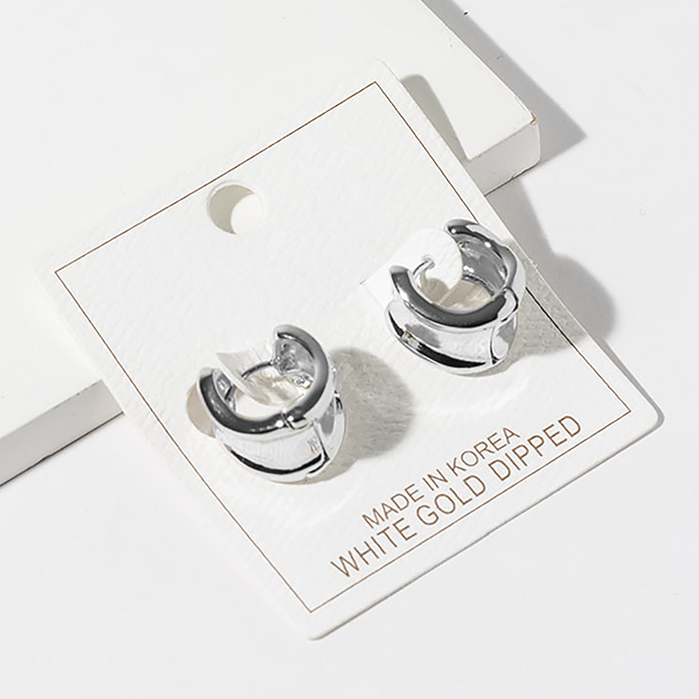 Details • Size : 0.6" X 0.6" X 0.5" • Huggie Back • Chic hoop stud earrings featuring a layered curved silhouette with smooth contours and a compact profile. Designed for effortless everyday wear, these versatile earrings add subtle dimension, modern elegance, and polished style to casual outfits, office looks, and curated accessory collections. • Gold Dipped • Lead and Nickel Compliant • Made In Korea