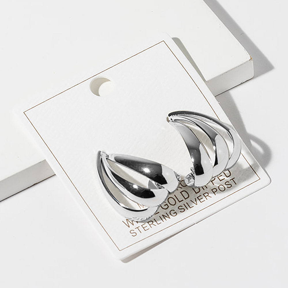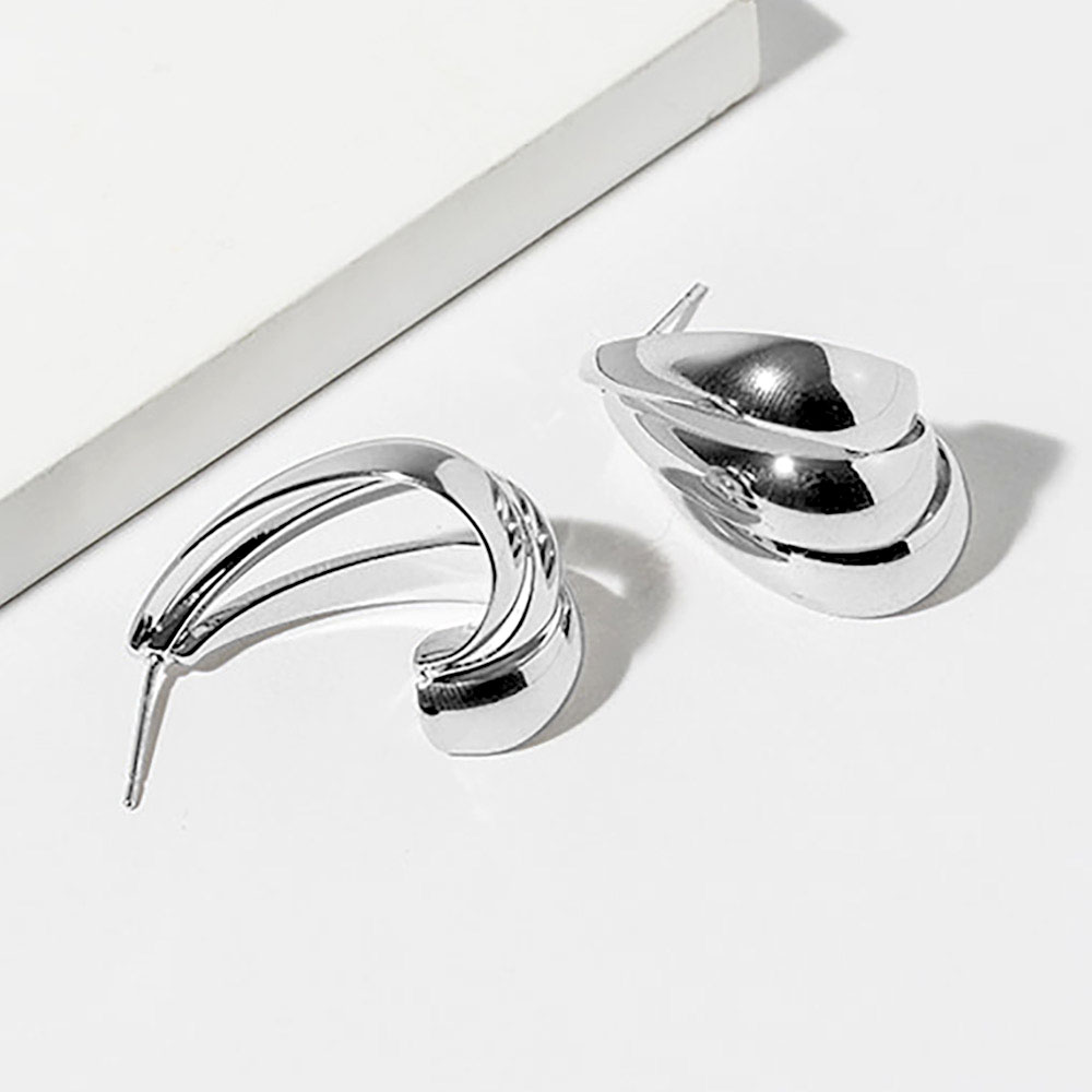 Details • Size : 0.75" X 1.1" • Modern stud earrings featuring a sculpted teardrop silhouette with layered curved detailing and a smooth polished finish. Designed to elevate everyday looks and refined outfits, these statement studs offer dimensional style, elegant contours, and versatile appeal, making them a standout addition to any contemporary jewelry collection. • Gold Dipped • Lead and Nickel Compliant • Made In Korea • Sterling Silver Post