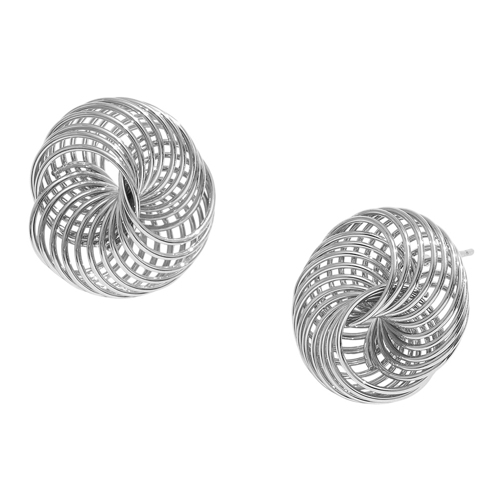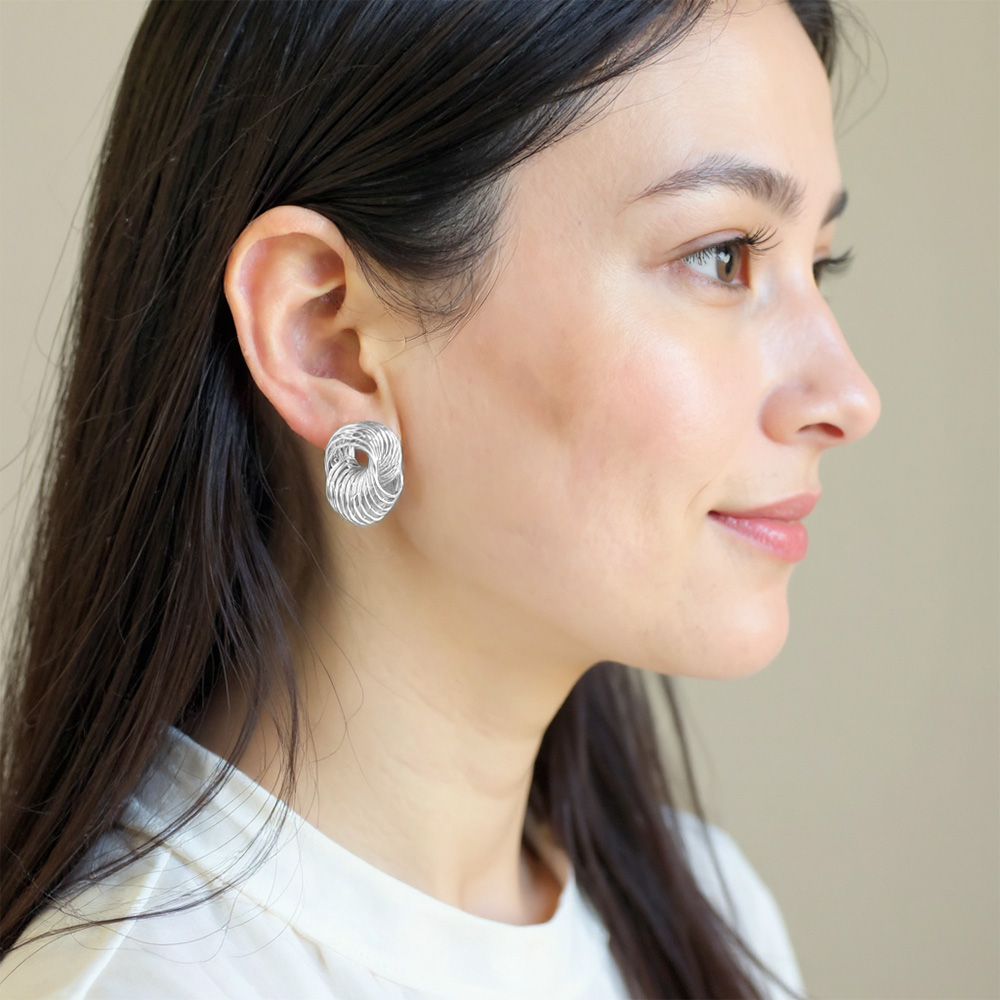 Details • Size : 1" X 1" • Post Back • Elegant knot stud earrings crafted with interwoven wire loops, creating a bold yet refined sculptural design. Lightweight and versatile, these earrings add modern sophistication to casual or formal outfits, making them a timeless accessory for jewelry collections and everyday wear. • Lead and Nickel Compliant • Hypoallergenic • Made In Korea • Gold Dipped • Brass