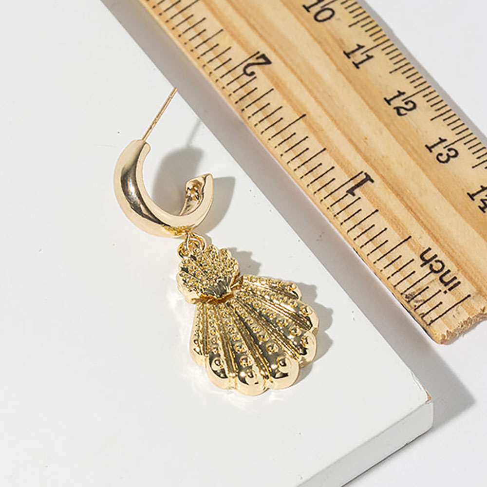 Details • Size : 0.75" X 1.75" • Scallop shell drop earrings featuring a sculpted shell motif with dimensional texture and elegant movement. Designed to complement resort looks, coastal edits, and everyday styling, these statement drops offer timeless seaside charm for boutique assortments and gift-ready displays. • Gold Dipped • Lead and Nickel Compliant • Made In Korea • Sterling Silver Post