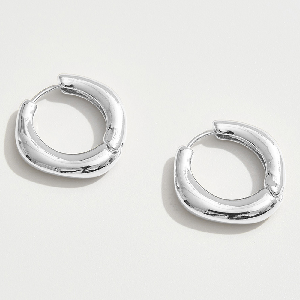 Details • Size : 1" X 1" • Huggie Back • Bold yet minimal, these rounded chunky hoop earrings feature a smooth, curved design that delivers timeless appeal. Lightweight and versatile, they make the perfect go-to accessory for adding a touch of effortless polish to casual looks or elevating chic evening ensembles. • Brass • Gold Dipped • Hypoallergenic • Lead and Nickel Compliant • Made In Korea