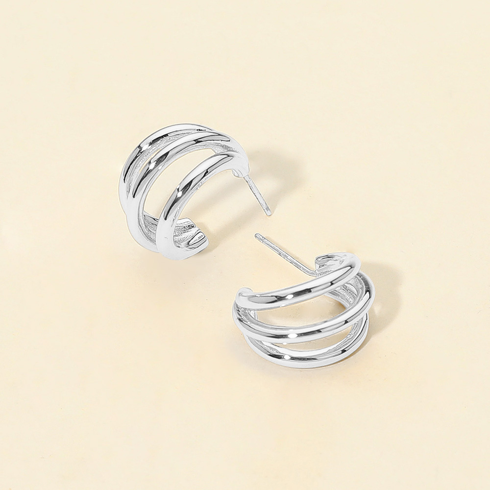 White Gold Dipped Triple Layered Mini Hoop Earrings White Gold Dipped Triple Layered Mini Hoop Earrings White Gold Dipped Triple Layered Mini Hoop Earrings