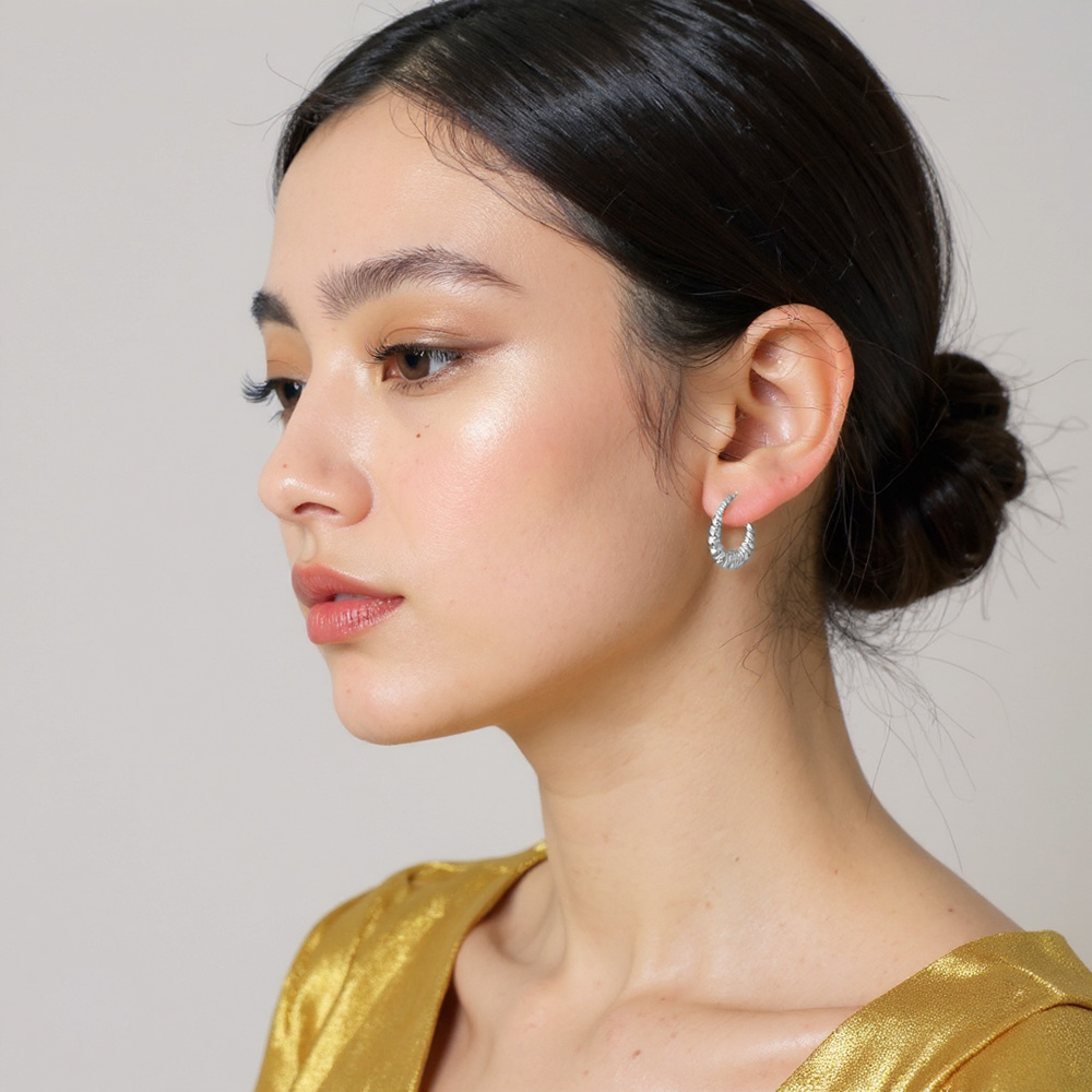 • Elevate your style with these twisted ribbed hoop earrings, featuring a bold sculptural design that adds depth and texture. Their sleek, polished finish makes them the perfect blend of modern elegance and timeless charm, ideal for day-to-night wear.