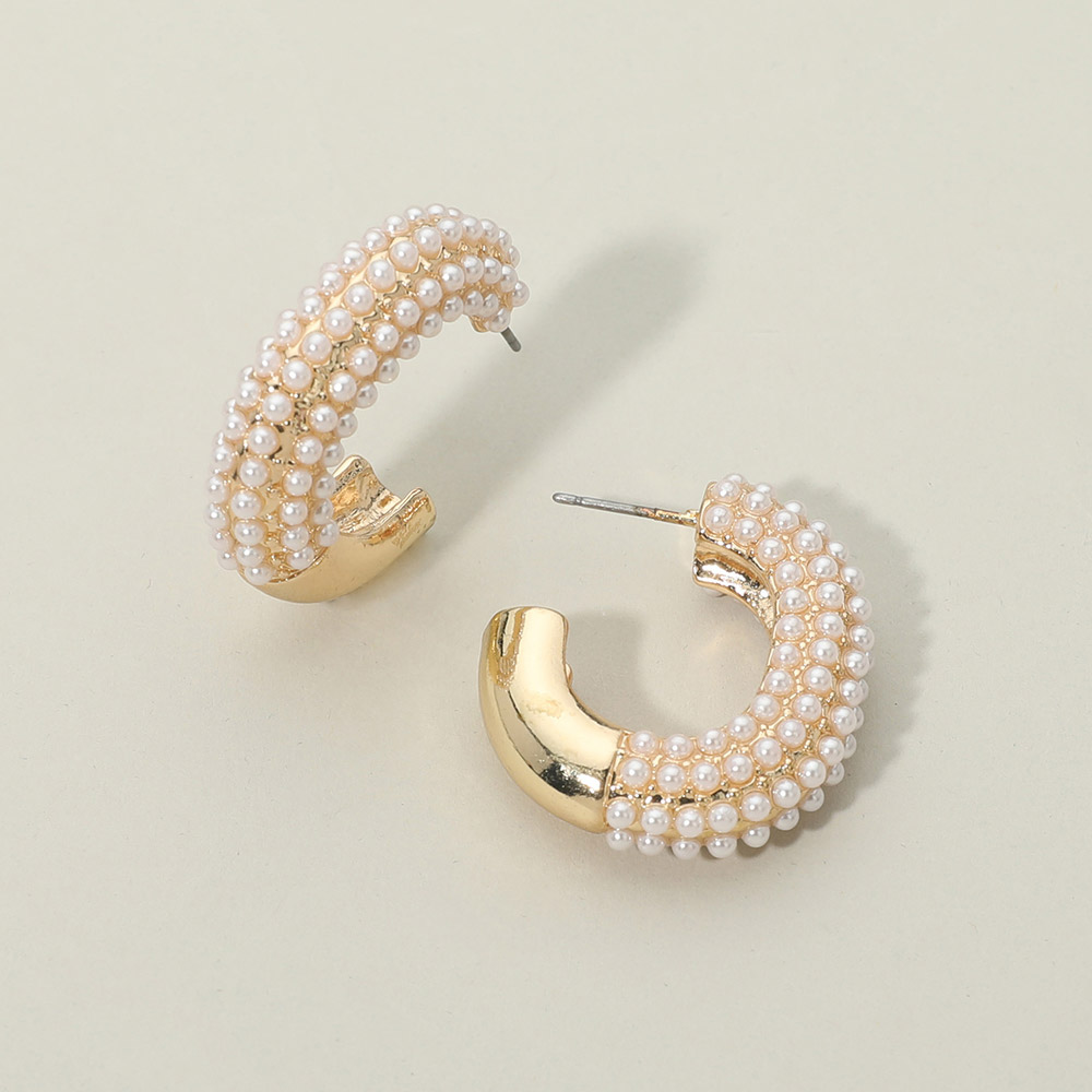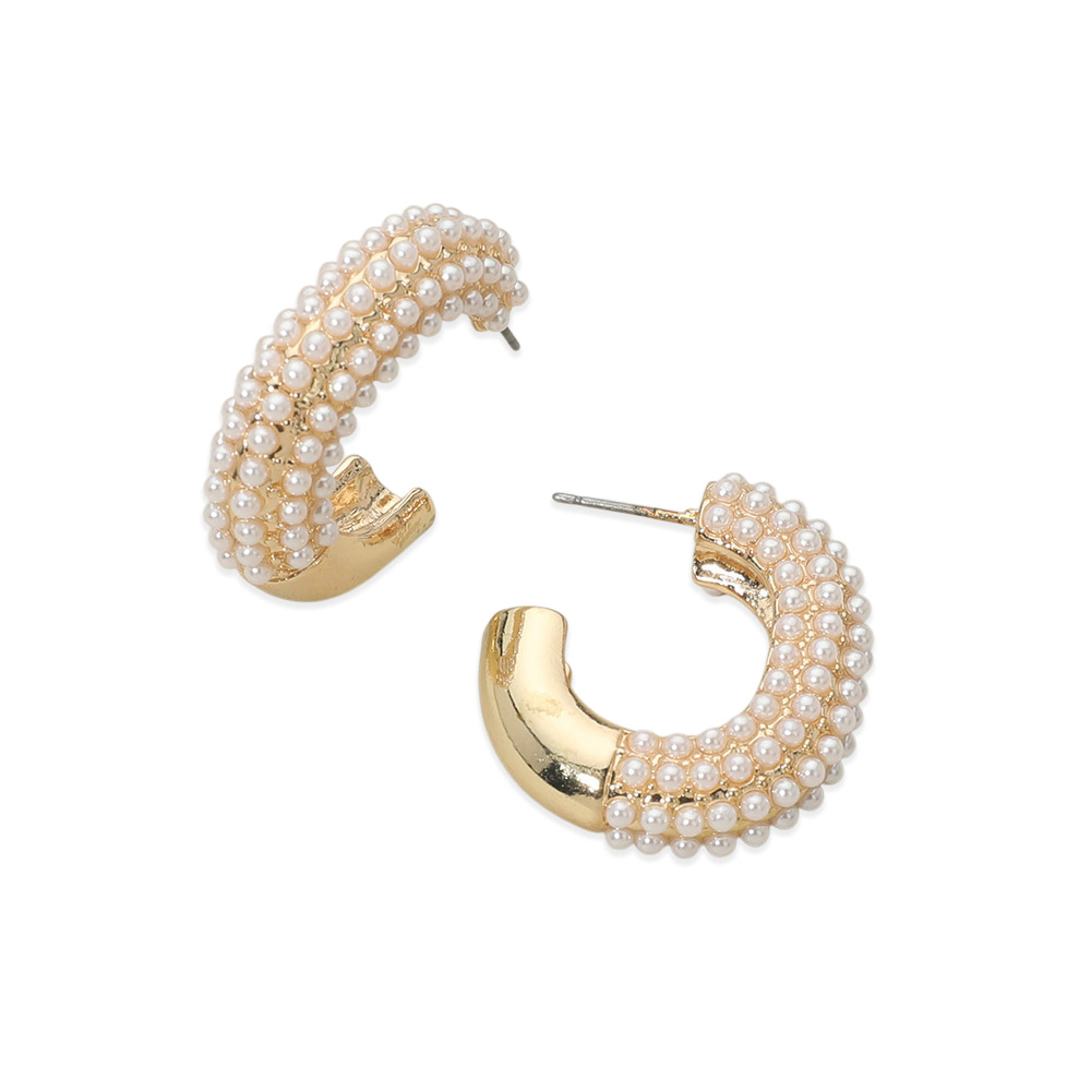• Chunky hoop earrings designed with layered pearl-style bead detailing for a polished, elevated look. A versatile statement accessory ideal for everyday outfits, special occasions, and curated accessory collections, offering timeless appeal with modern dimension and easy styling.