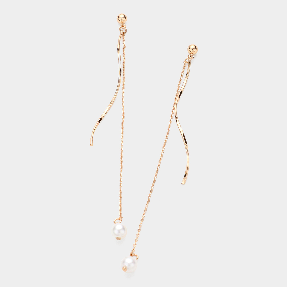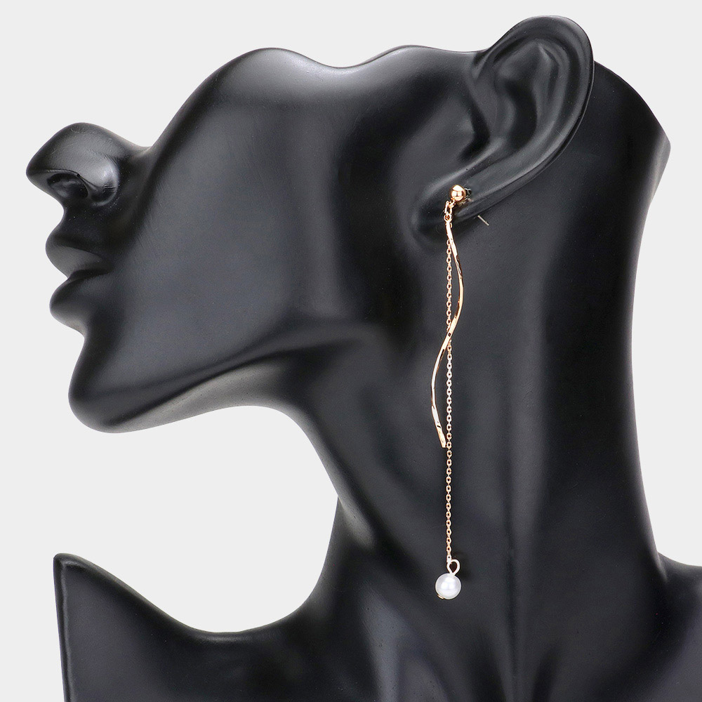 Swirl Rhinestone Embellished Metal Chain Dangle Earrings