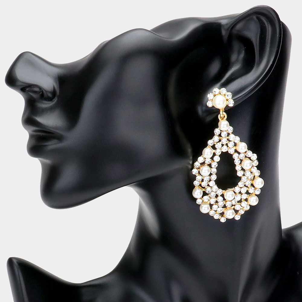 Pearl Detail Rhinestone Open Teardrop Evening Earrings