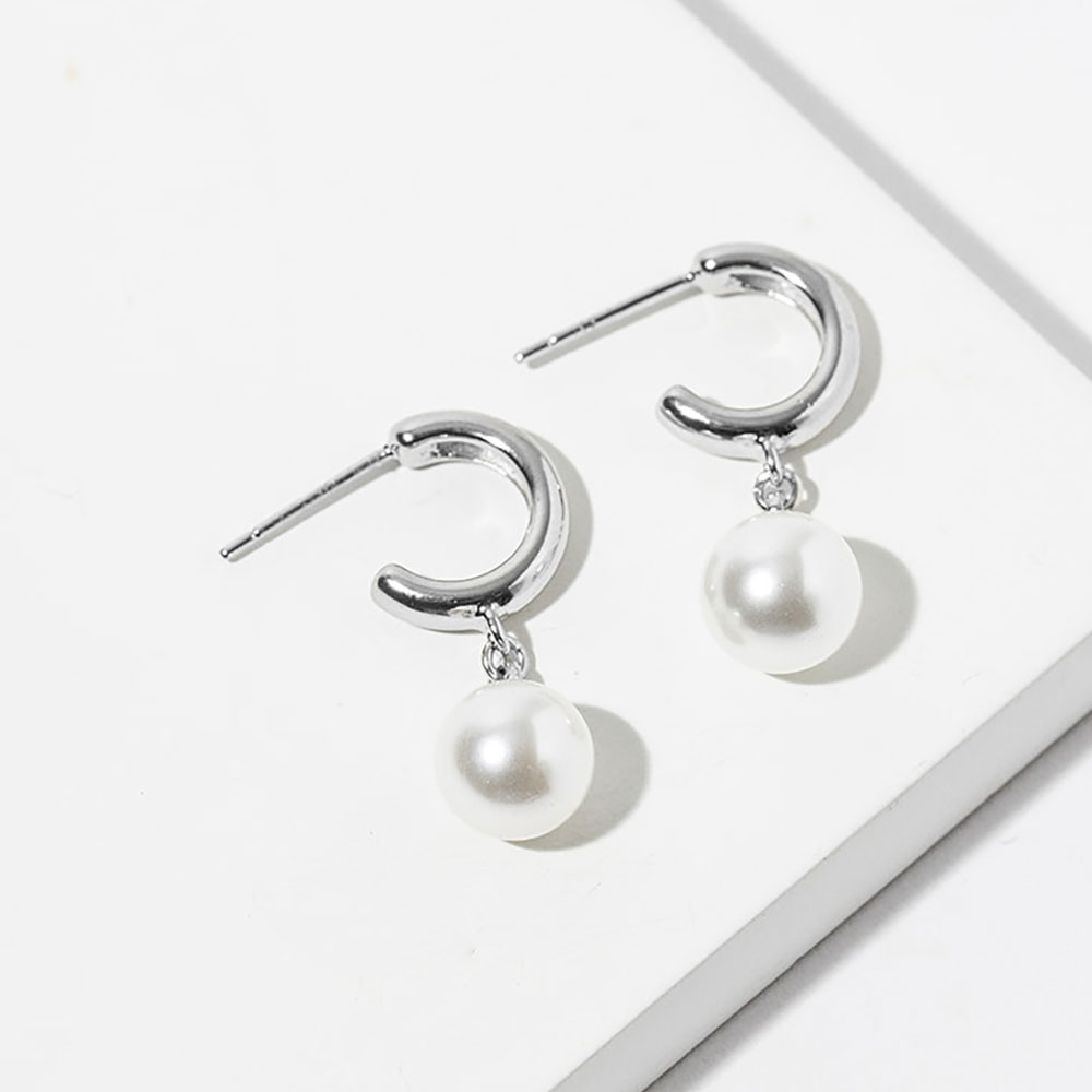 • Elegant pearl drop mini hoop earrings featuring a smooth curved silhouette paired with a classic round drop accent. Designed to add soft movement and refined charm, these earrings transition effortlessly from everyday wear to dressier occasions, making them a versatile addition to any accessory assortment.