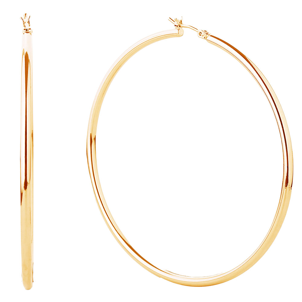 Details • Size : 2.75" X 2.75" • Pin Catch • Water resistant plating • Stylish large hoop earrings designed to make a bold impact. Lightweight and comfortable for all-day wear, these hoops elevate casual and dressy outfits with effortless glamour, making them a versatile must-have accessory for modern fashion. • Brass • Gold Dipped • Hypoallergenic • Lead and Nickel Compliant • Made In Korea