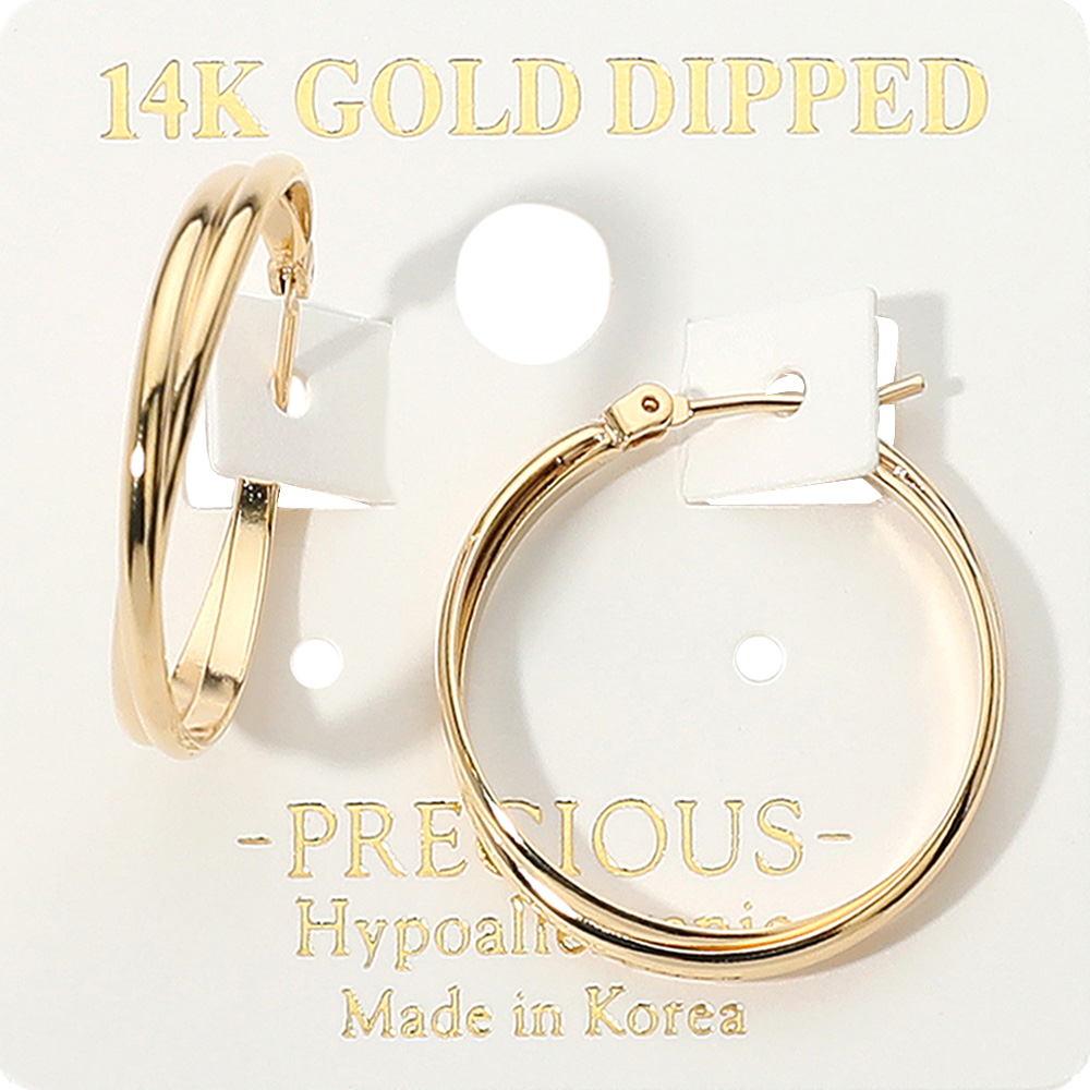 14K Gold Dipped Hypoallergenic Twisted Pin Catch Hoop Earrings