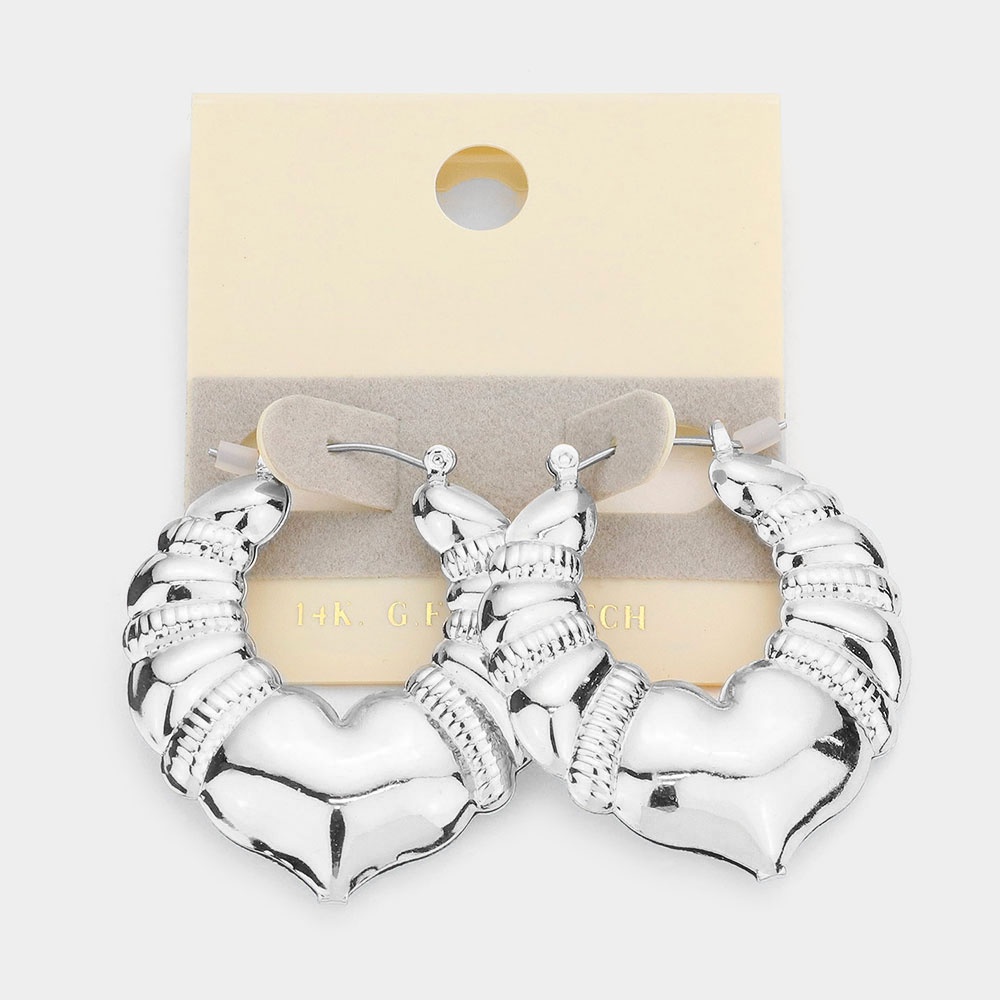 Pearl Rhinestone Embellished Flower Open Metal Bamboo Link Dangle Earrings