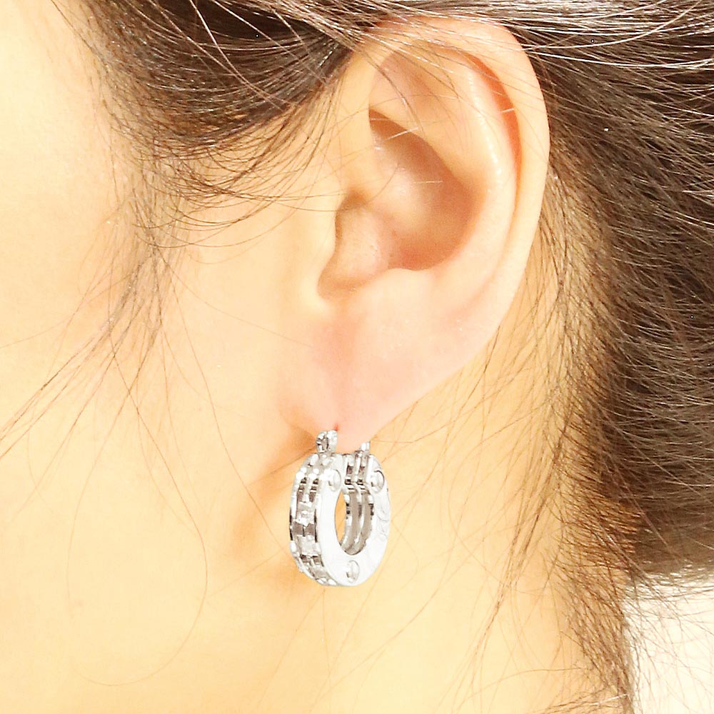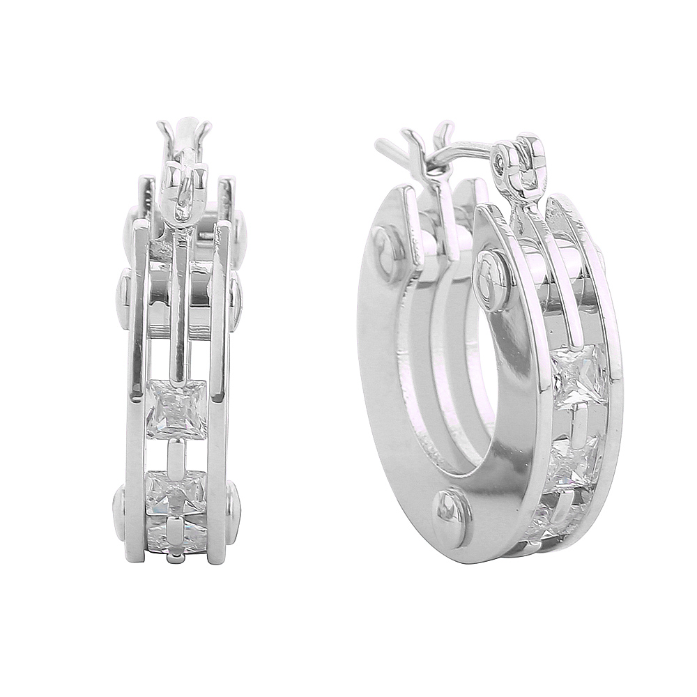 14K White Gold Dipped CZ Stone Pointed Trio Layer Hypoallergenic Pin Catch Hoop Earrings