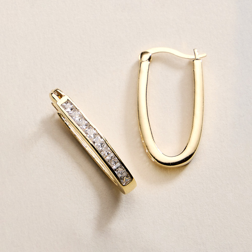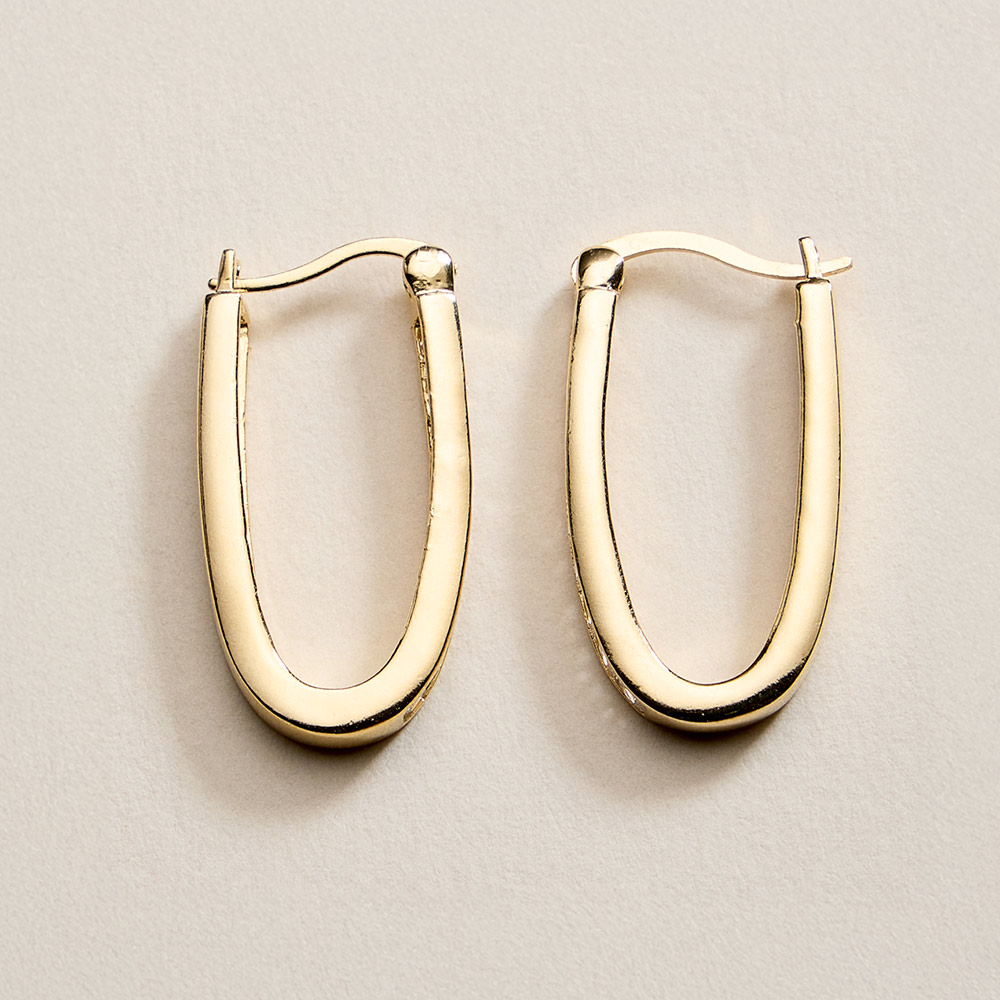 Details • Size : 0.7" X 1.2" • Pin Catch • Sleek oval hoop earrings designed with a smooth, modern silhouette that adds effortless polish to any look. Lightweight and easy to wear, they pair beautifully with casual outfits, workwear, and evening styles, making them a versatile essential for daily wear and gifting. • CZ Cubic Zirconia • Gold Filled • Hypoallergenic • Lead and Nickel Compliant • Made In Brazil