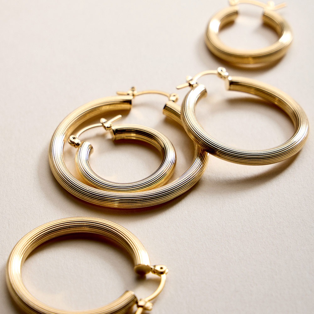 Details • Size : 1" X 1" • Pin Catch • Classic hoop earrings designed with a smooth, rounded profile that delivers timeless appeal and everyday versatility. The clean silhouette offers effortless styling for casual looks or polished outfits. A staple accessory ideal for layering, gifting, or adding a refined finish to any jewelry collection. • Gold Filled • Hypoallergenic • Lead and Nickel Compliant • Made In Brazil