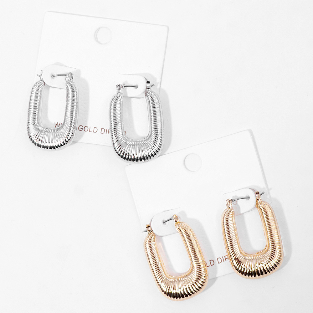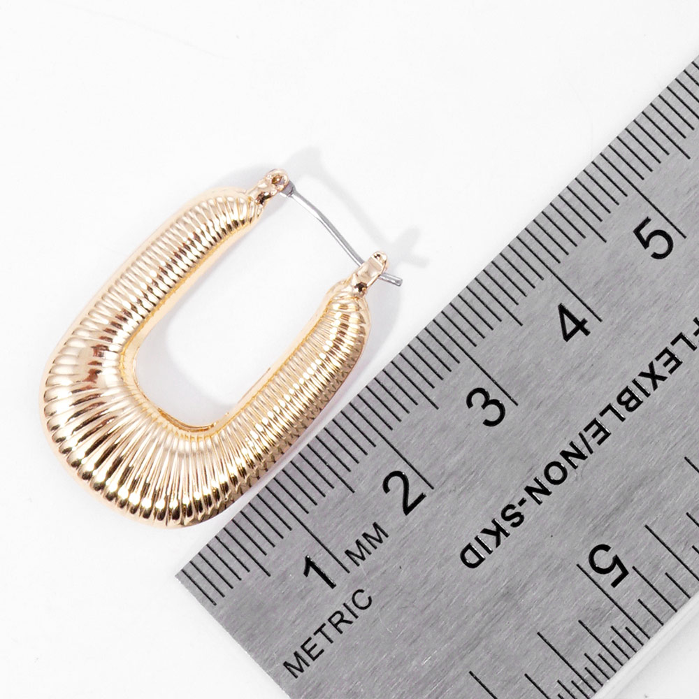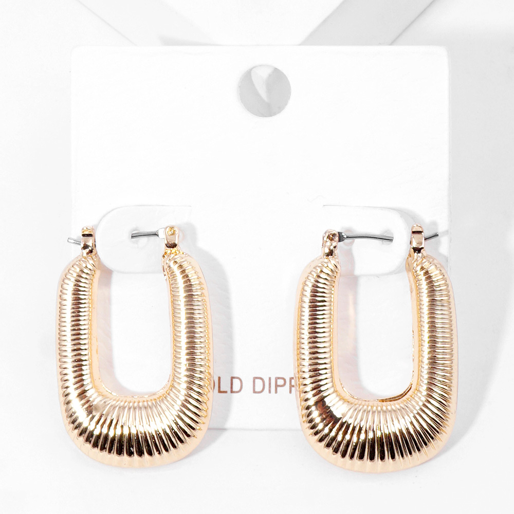 Gold Dipped Textured Metal Rectangle Hoop Pin Catch Earrings