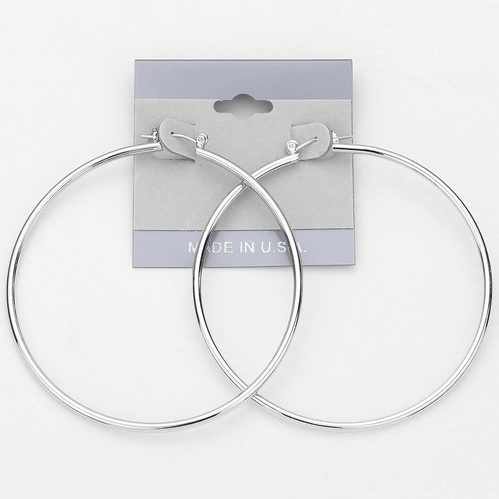 Details • Size : 2.6" L • Pin Catch • Made In USA • Elevate your everyday style with these classic oversized hoop earrings, designed for a sleek and versatile look. Lightweight and comfortable to wear, they add a bold yet timeless accent to any outfit, making them the perfect go-to accessory for day or night.