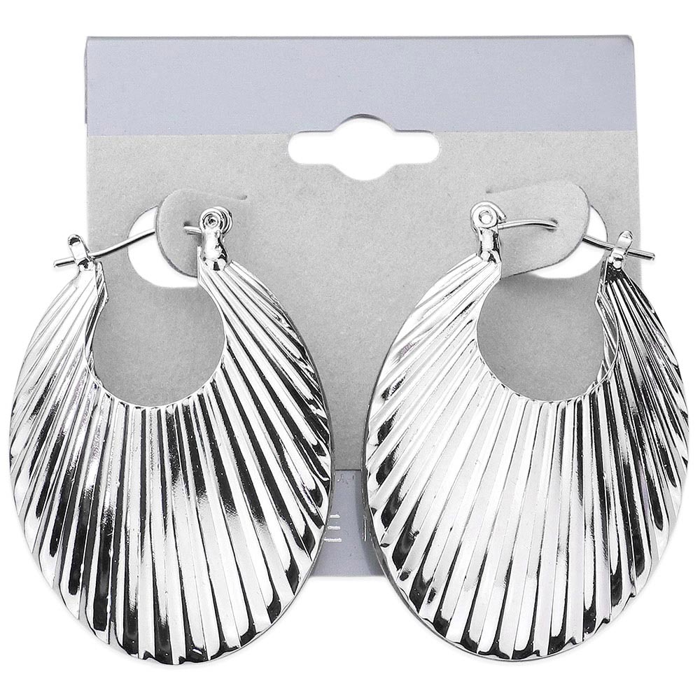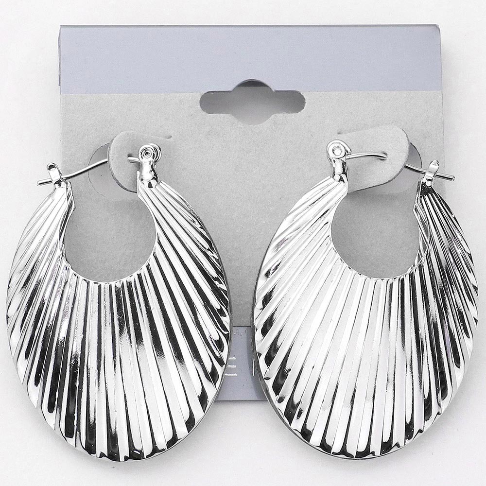 Ridged Metal Oval Pin Catch Hoop Earrings