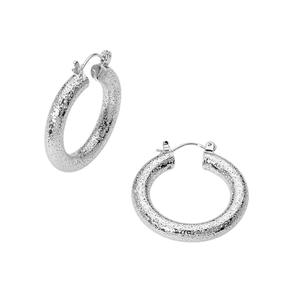 Details • Size : 1.2" X 1.25" • Pin Catch • Statement hoop earrings with a wide rounded shape and textured surface, designed for a modern and eye-catching accessory style. • Lead and Nickel Compliant