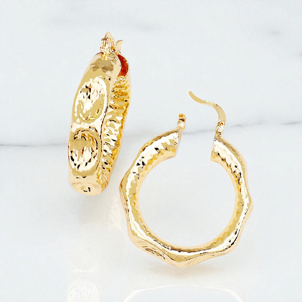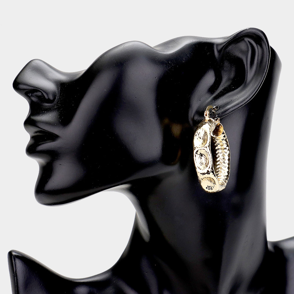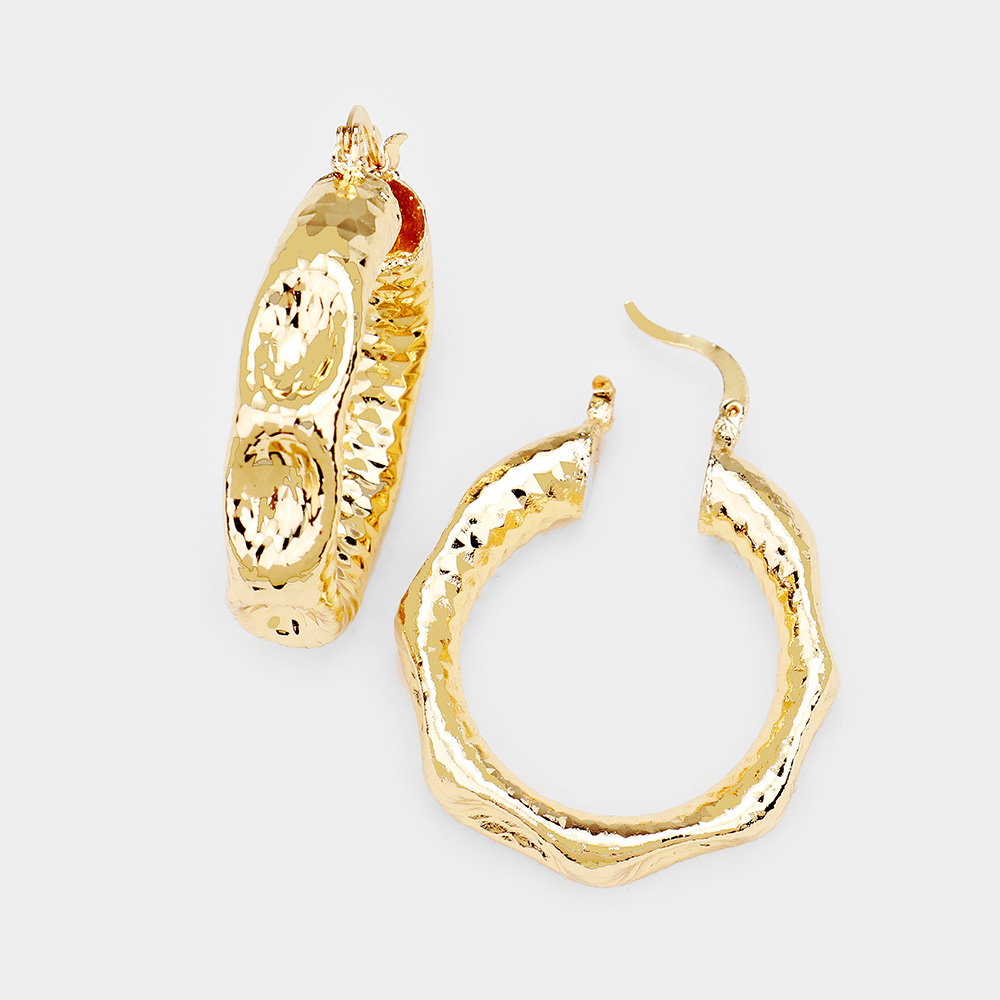Textured Open Circle Hook Pin Catch Earrings