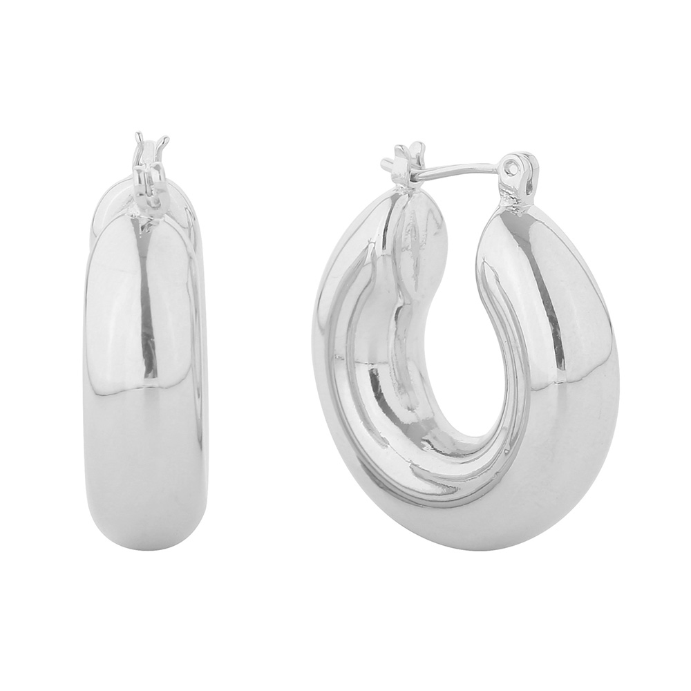 White Gold Dipped Chunky Pin Catch Hoop Earrings White Gold Dipped Chunky Pin Catch Hoop Earrings